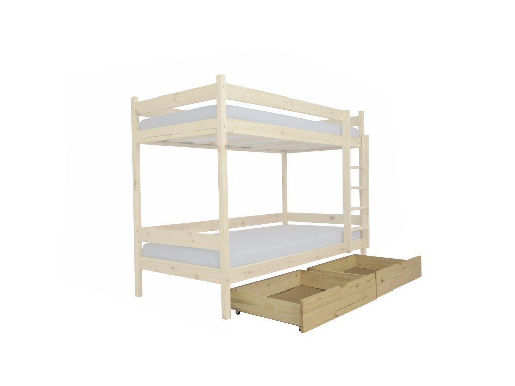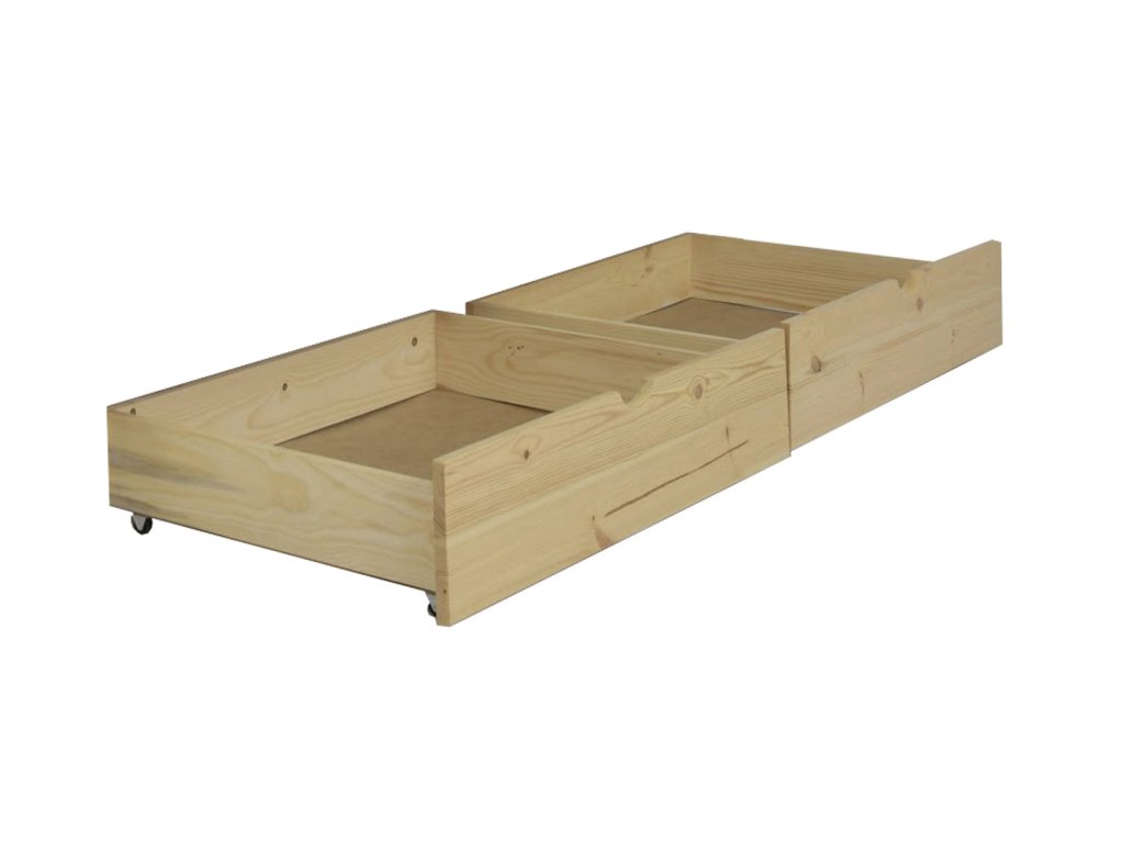 A PAULÍNA emeletes ágyakhoz és a Pery házikó ágyakhoz hozzávásárolható ez a két darab tágas ágyneműtartó. A tároló fiókok gumi kerekeken mozgathatók, hogy ne okozzanak sérülést a padlón vagy a gumiszőnyegen. Az előlapjuk tömör borovi fenyőből készül, az oldalak DTD bútorlapból, az aljuk pedig farostlemez.