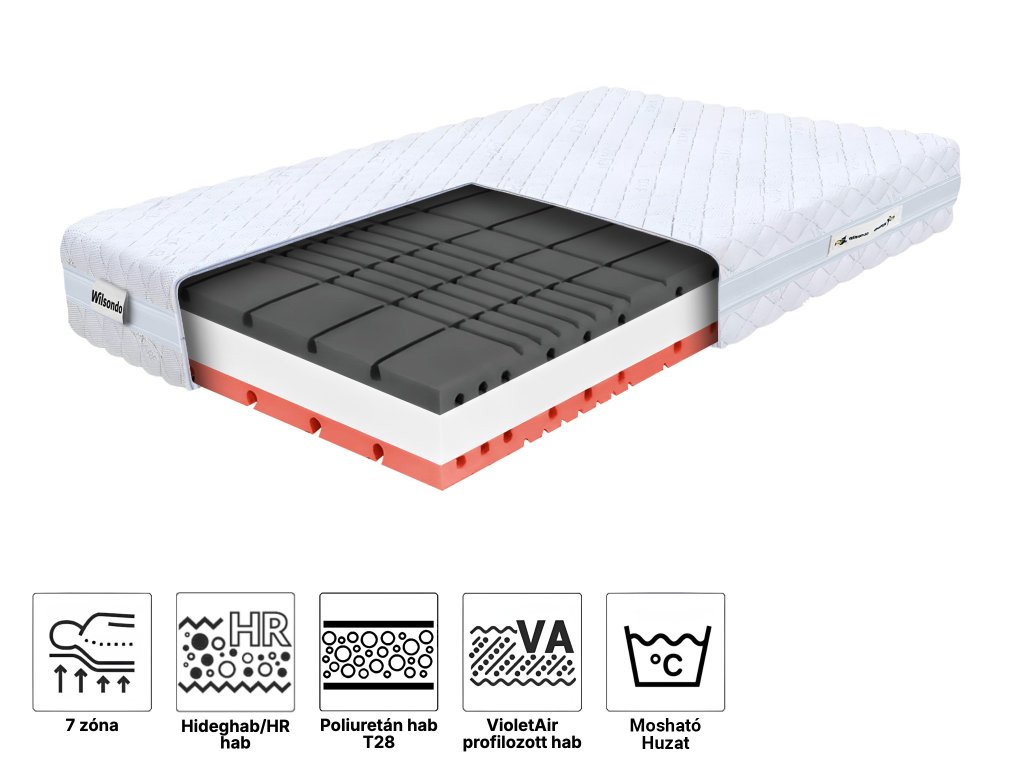 Anyagösszetétel: Poliuretán hab, Profilozott hab, VioletAir hab, Silver huzat