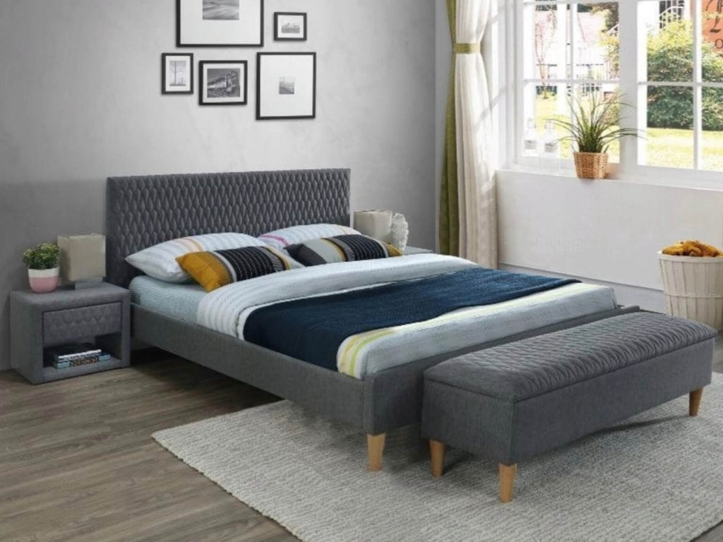ARNICA steppelt háttámlával rendelkező franciaágy. Kárpitozott ágy ergonomikus dizájnnal, amely tökéletes választás egy skandináv vagy egy modern stílusban berendezett hálószobába. Az ágy rendkívüli kényelmet kínál, magas kárpitozott fejtámlával rendelkezik.A franciaágy lekerekített formájú tömör fa lábakkal rendelkezik natúr színben. A steppelt háttámlának köszönhetően kényelmesen tud majd olvasni vagy tévét nézni is az ágyból. Esztétikus és praktikus szövettel van kárpitozva, amely nem csak remekül mutat, de kiemelkedő ellenálló képességgel is rendelkezik az elhasználódással szemben. Ez az anyag ráadásul rendkívül könnyen tisztán is tartható. Az ágyrács az ágy részét képezi.