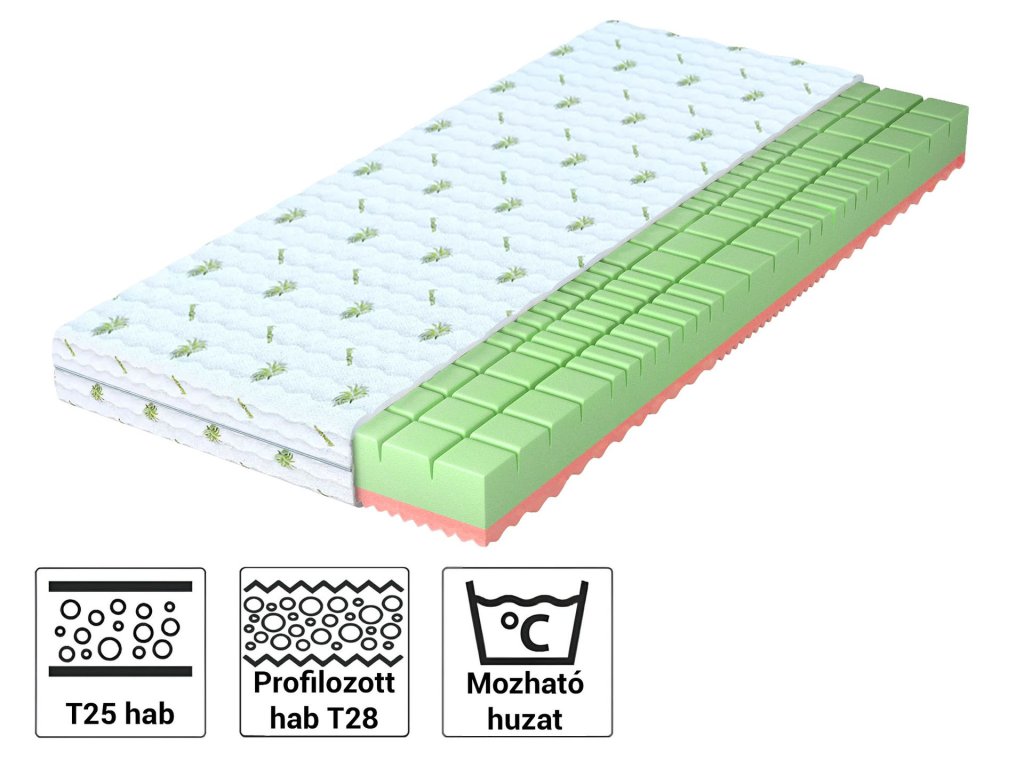 Anyaga: profilozott T25-ös hab, profilozott T28-as hab, Aloe Vera huzat