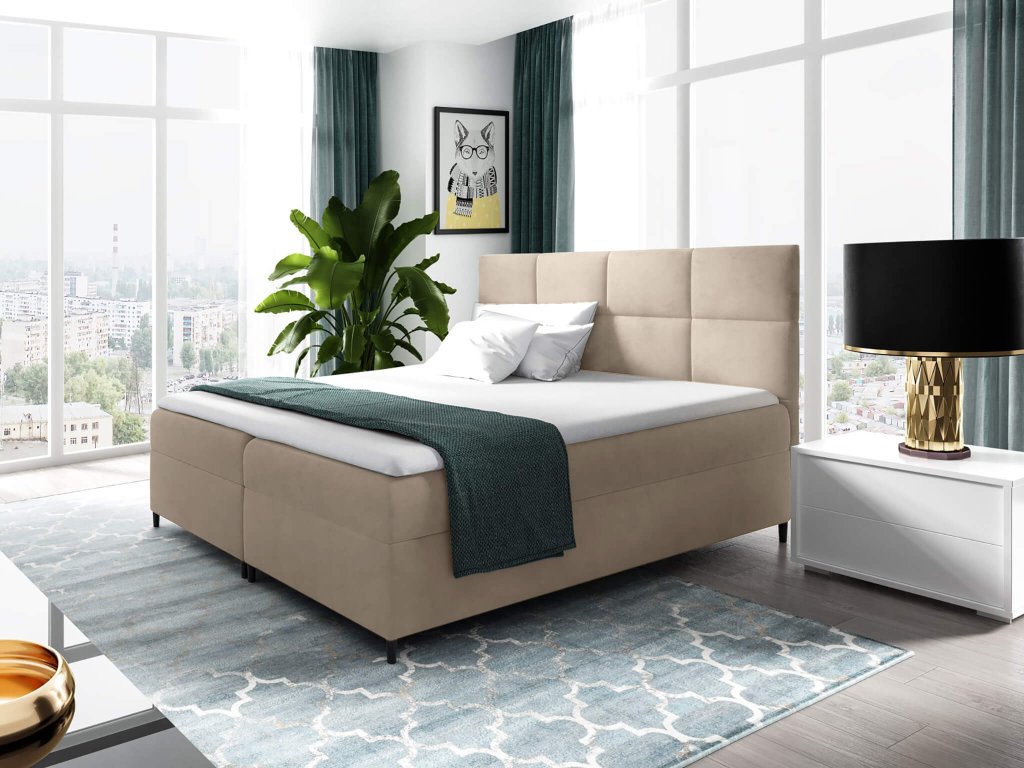 A minőségi boxspring ágy Magic velvet 2282 szövettel kárpitozott, amely puha, bársonyos és kellemes tapintású. Ez az anyag ellenálló a kikopással szemben és nem bolyhozódik. Ez a bézs kontinentális ágy eleganciát visz minden hálószobába.
