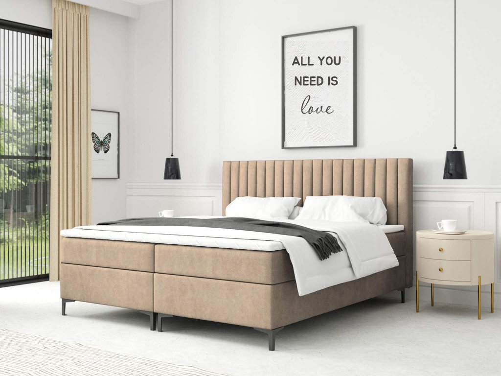 A mindennapi életünk alapvető feltétele a minőségi és pihentető alvás. A MODENA boxspring ágy gyönyörű bézs Royal szövettel kárpitozott, amelynek köszönhetően megfelelő pihenésben lesz része. Ez azonban nem minden, ugyanis mindezek mellett a tulajdonságok mellett az ágy igazán gyönyörű, luxusos és modern is. Az ágy két méretben elérhető: 160x200 és 180x200 cm. A franciaágy ráadásul még praktikus ágyneműtartóval is rendelkezik. Az ágy váza tömör fa és laminált forgácslap kombinációjában készül. Az ágytámla 5 cm vastag bútorlapból és T25-ös habból áll. Gyönyörű steppeléssel díszített, mely még inkább emel a külalakján. Dobja fel hálószobáját ezzel az elegáns és megbízható döntést jelentő ággyal. Beépített ágyráccsal és matraccal rendelkezik. A matracban található 9 keménységi zóna tökéletes alátámasztást biztosít a hátgerincnek, a csípőnek és a vállaknak, így biztosítva optimális pihenést.