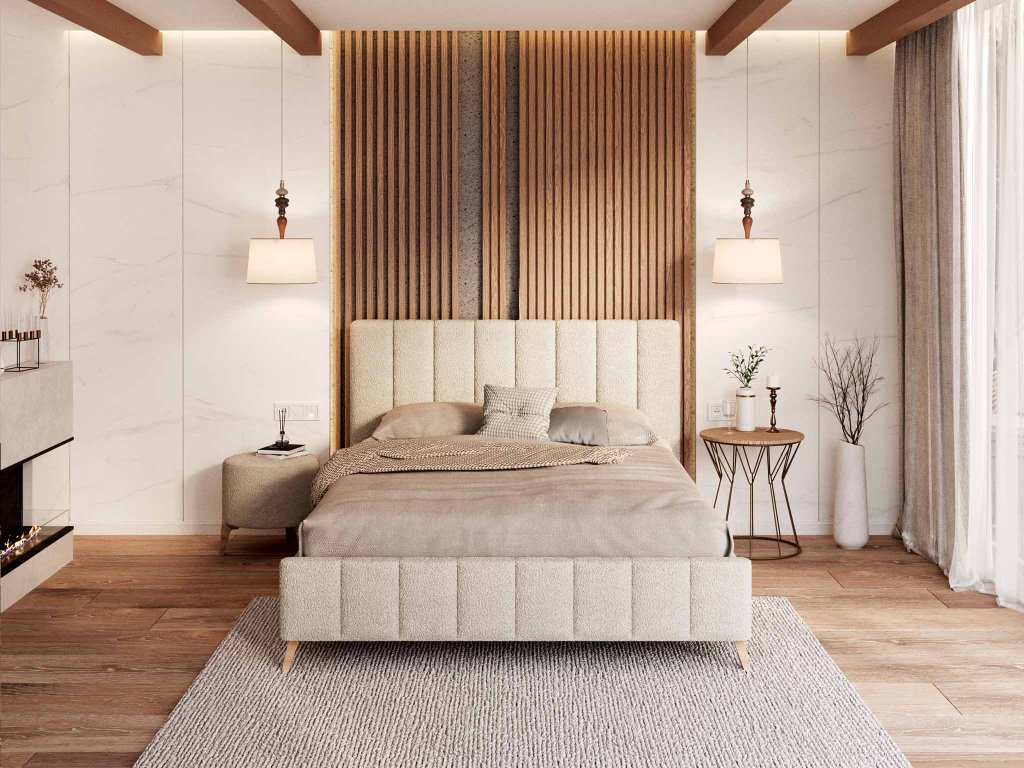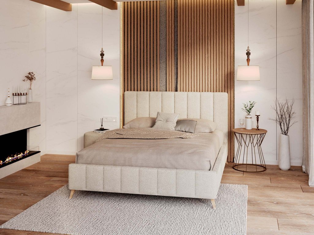 A SAFAR franciaágy tökéletes választást jelent azoknak, akik értékelik a kényelmet és a skandináv minimalizmus által inspirált modern dizájnt. Az ágy tartós és ellenálló krémszínű bouclé velúr szövettel kárpitozott, amely puha tapintású és elegáns megjelenést kölcsönöz. A bútortest minőségi MDF lapból készült, ami garantálja a szilárdságot és stabilitást. A fa ágylábak pedig légies könnyedséget és előkelőséget adnak a kétszemélyes ágynak.