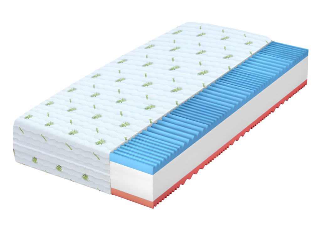 A kiváló minőségű, 7 zónás habból készült, profilozott felületű anyag elősegíti a jobb vérkeringést és az izmok ellazulását pihenés közben. A testhőmérséklet alapján alkalmazkodik a test formájához, ezáltal növelve a kényelmet és az alvás minőségét. Az egyes zónák eltérő keménysége optimális támogatást nyújt a gerincnek, és biztosítja a test természetes pozícióját. Ez a habtípus ideális választás allergiára érzékeny emberek számára is.