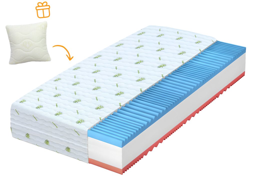 A kiváló minőségű, 7 zónás habból készült, profilozott felületű anyag elősegíti a jobb vérkeringést és az izmok ellazulását pihenés közben. A testhőmérséklet alapján alkalmazkodik a test formájához, ezáltal növelve a kényelmet és az alvás minőségét. Az egyes zónák eltérő keménysége optimális támogatást nyújt a gerincnek, és biztosítja a test természetes pozícióját. Ez a habtípus ideális választás allergiára érzékeny emberek számára is.