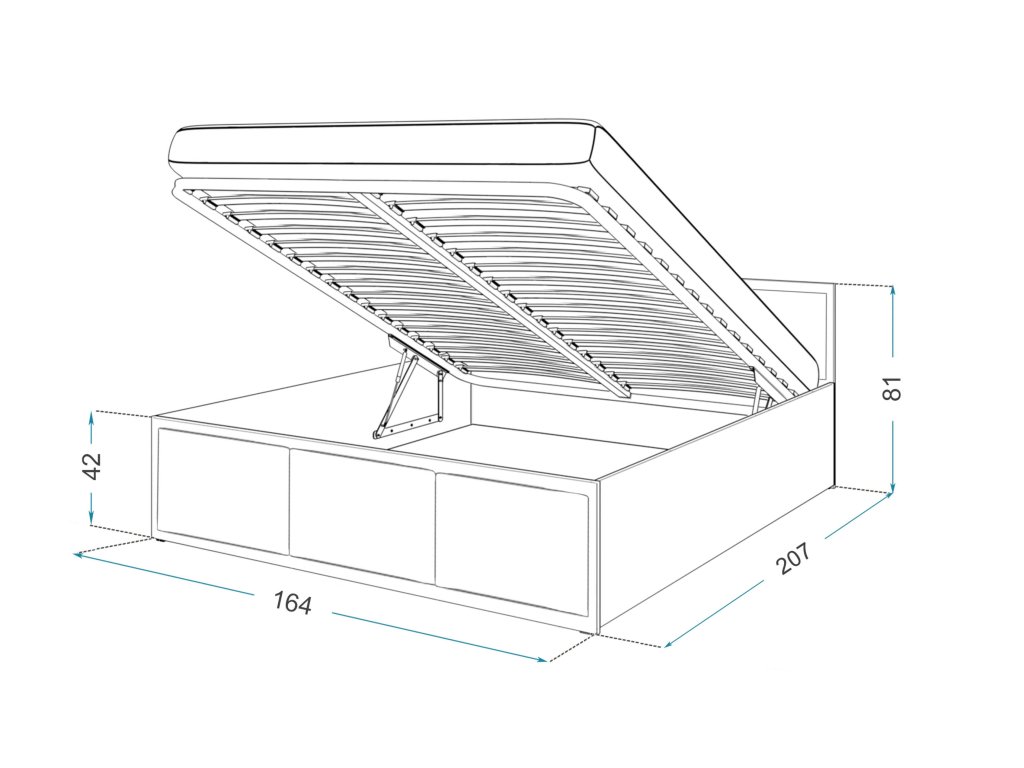 Fehér színű DOLLY kárpitozott franciaágy grafit színű kárpitozott panelekkel és ágyneműtartóval. Az ágy tágas felnyitható ágyneműtartóval is rendelkezik, ahová elteheti az ágyneműt, plédeket, takarókat és egyéb apróságokat. Az ágy szerkezete minőségi DTD bútorlapból készült 16-18 mm vastagsággal, amely nagyon ellenálló és könnyen tisztítható. Az ágy végei kárpitozott panelekkel vannak díszítve, amelyek színt visznek a hálószobába. A kárpitozó anyag nagyon ellenálló a bolyhozódással szemben és kellemes tapintású. Az ágy részét képezi a minőségi fém ágyrács fa lamellákkal. Az ágyrács felemelését 2 darab gázrugó végzi, amelyek egyenként 400N - 1000N kitolóerejűek lehetnek, az ágy méretétől függően.