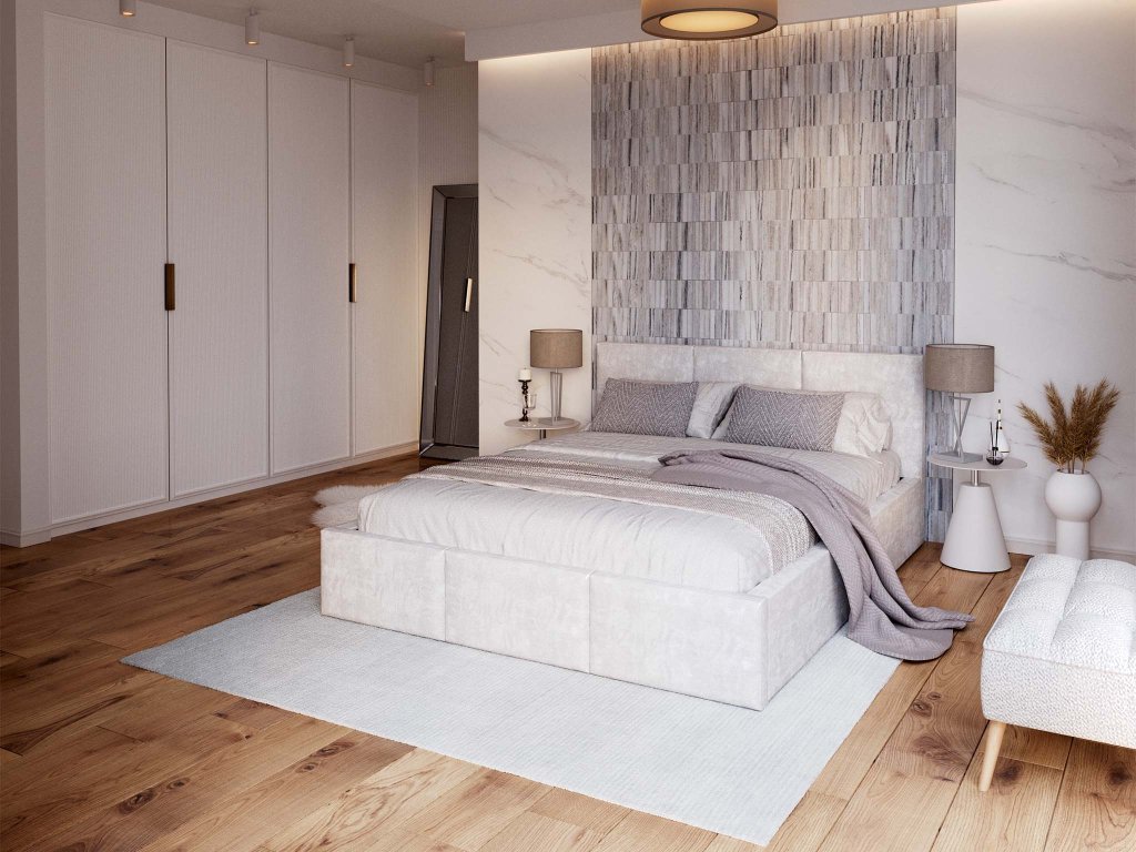 Fehér kárpitozott IZABELLA ágyneműtartós franciaágy