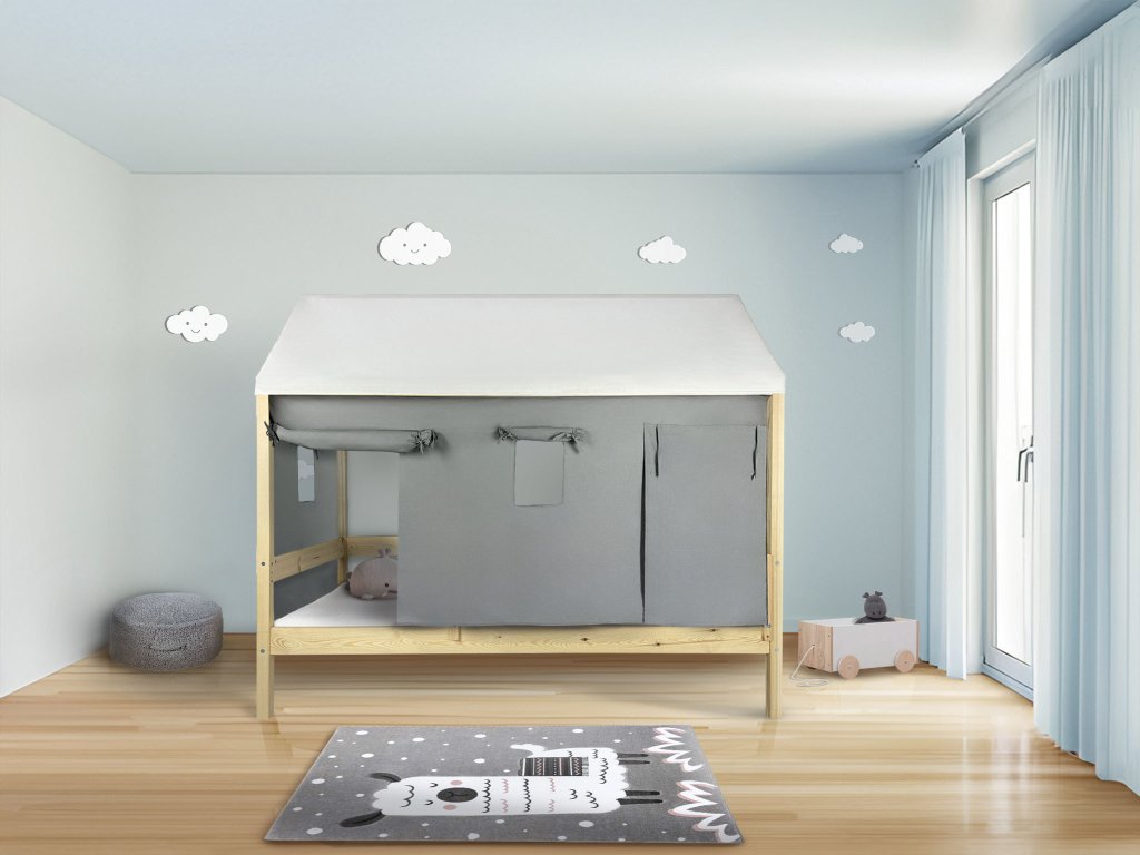 A PERY tömörfa házikó ágyhoz tervezett függöny segítségével otthonos kis lakássá változik az addig csupán ágyként funkcionáló bútor. A praktikus tépőzáras rögzítésnek köszönhetően a vele való manipuláció és karbantartás rendkívül gyors és egyszerű. Az eleganciát sugárzó szürke színű függönnyel ízlésesen berendezheti a gyerekszobát. Ajtókat és ablakokat is tartalmaz, hogy gyermeke kedvére játszhasson alatta.