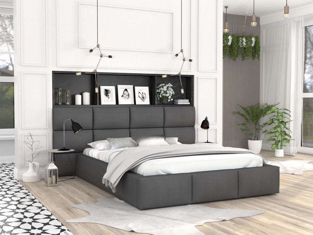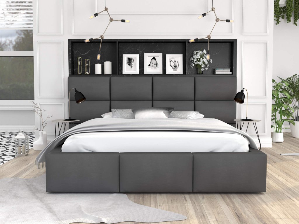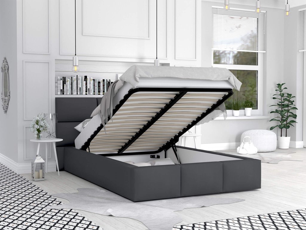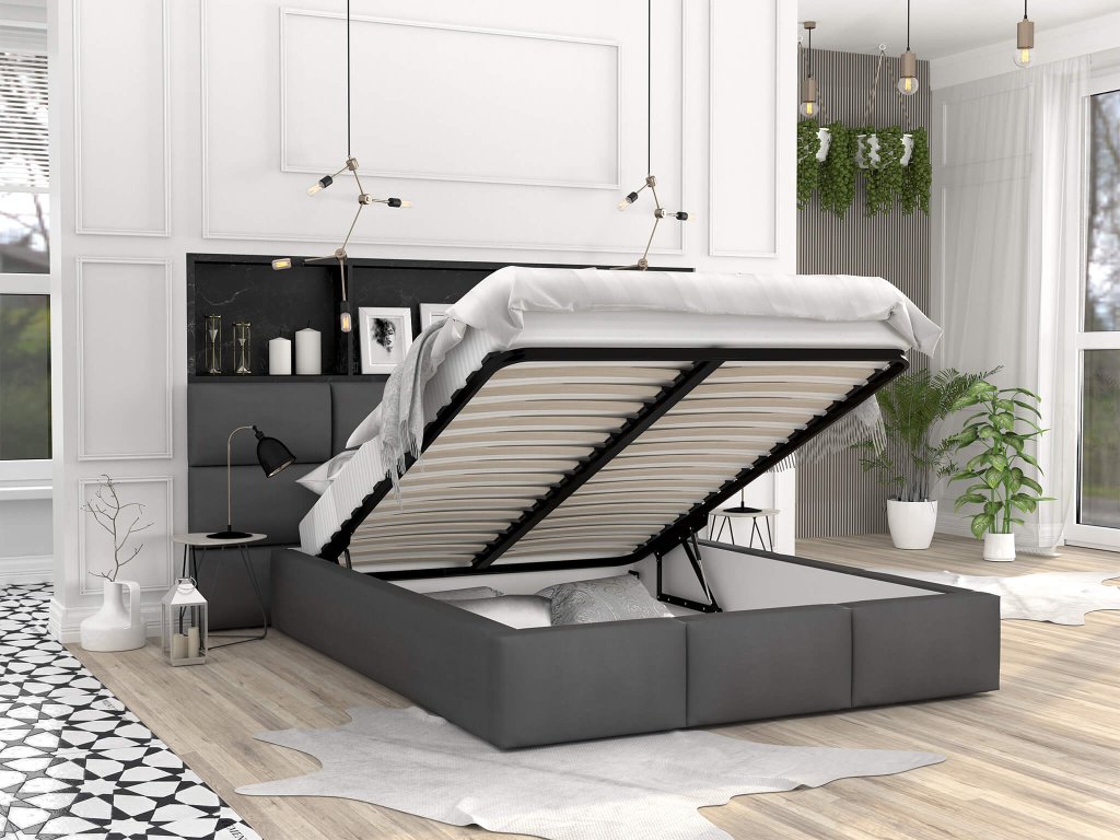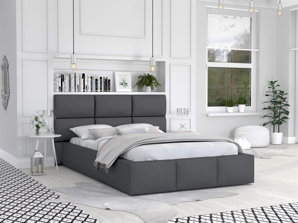 Sötétszürke DONY kárpitozott franciaágy több méretben: 140x200, 160x200, 180x200 cm. Az ágy felnyitható ágyneműtartóval is rendelkezik, így igazán praktikus és tökéletes választás minden hálószobába. Olvasás vagy tévénézés közben nagy hasznát veszi majd a magas és puha kárpitozott háttámlának. Az ágyhoz praktikus ágyneműtartó is tartozik, amely két gázrugó segítségével könnyen felnyitható. A minőségi anyagok és a stabil szerkezet garantálják, hogy hosszú ideig az Ön szolgálatában áll majd. A Trinity szövet, amellyel az ágy kárpitozva van nagyon kellemes tapintású. A speciális nagy átmérőjű csavaroknak köszönhetően az ágy egyes részei igazán stabilan rögzülnek egymáshoz. Az ágyhoz lamellás ágyrács tartozik.