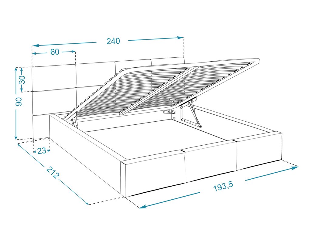 - Anyaga: Trinity szövet (100 % poliészter), DTD bútorlap szerkezet, gázrugók az ágyrács megemelésére