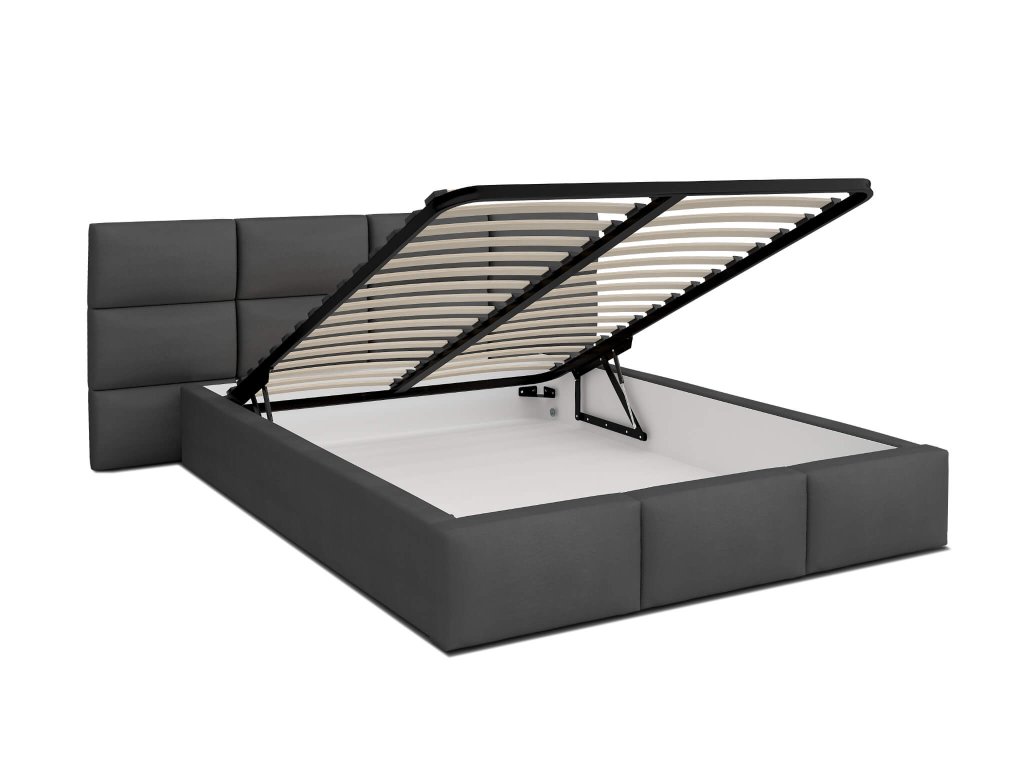 Grafitszürke DONY kárpitozott ágyneműtartós franciaágy