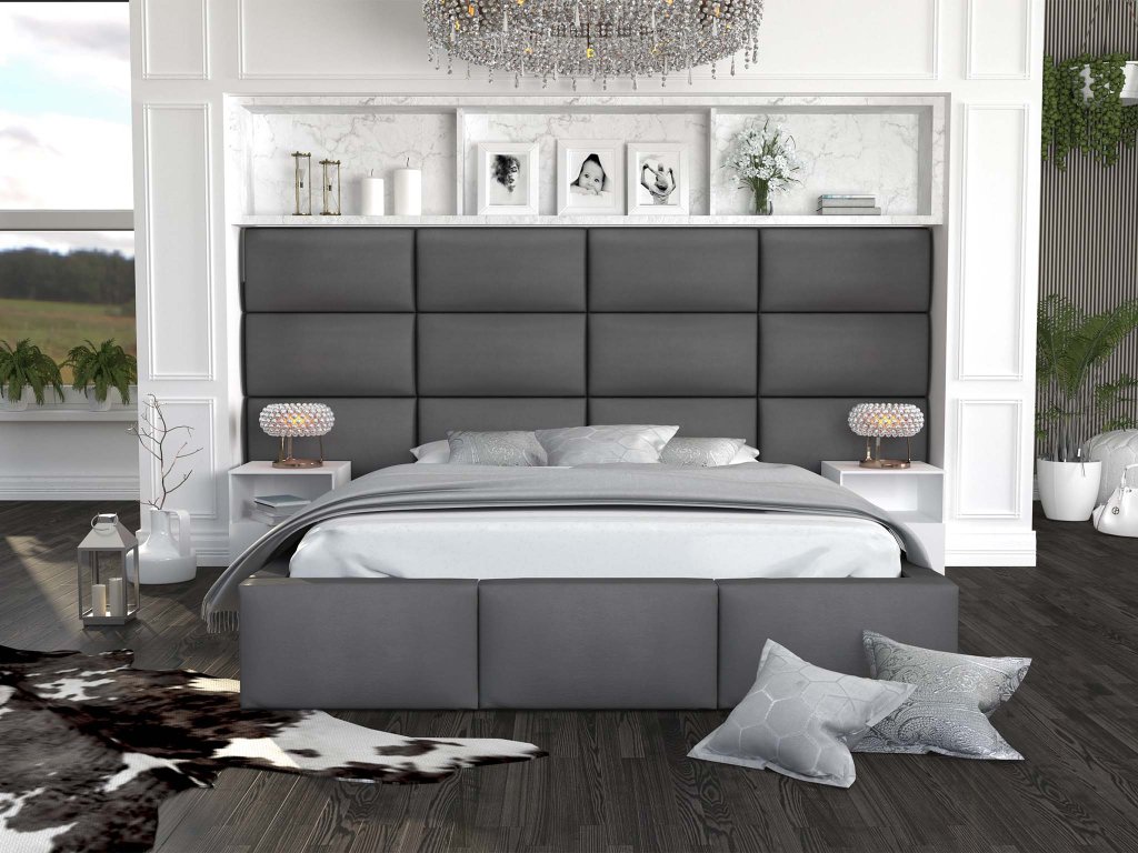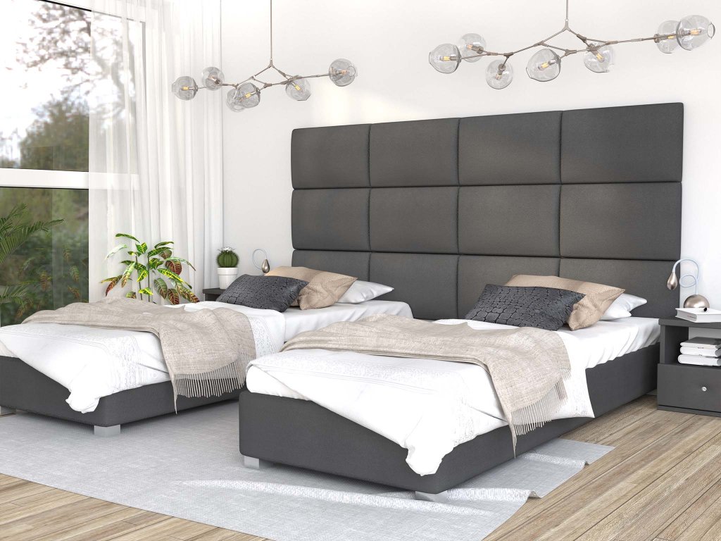 A grafit színben kapható DONY kárpitozott falpanel segít Önnek, hogy komfortosabb legyen a hálószoba és designos az előszoba vagy a nappali. A kínálatunkban megtalálható DONY egyszemélyes ágyak (120x200 és 90x200) és franciaágy bútorkárpitja megegyezik a fali dekorpanel kárpitanyagával, ezért tökéletesen alkalmas arra, hogy kiegészítve egymást Önnek kényelmes ágyvéget biztosítson. Ugyanakkor bármilyen egyéb, már meglévő ágyhoz is ízlésesen hozzáilleszthető.