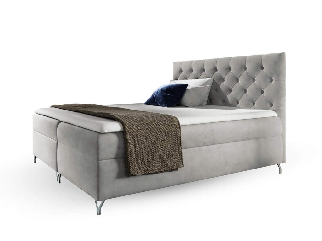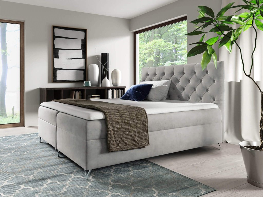 A boxspring ágy Magic velvet 2240 szövettel kárpitozott, amely puha, bársonyos és kellemes tapintású. Ez az anyag ellenálló a kikopással szemben és nem bolyhozódik. A világosszürke kontinentális ágy eleganciát visz minden hálószobába.