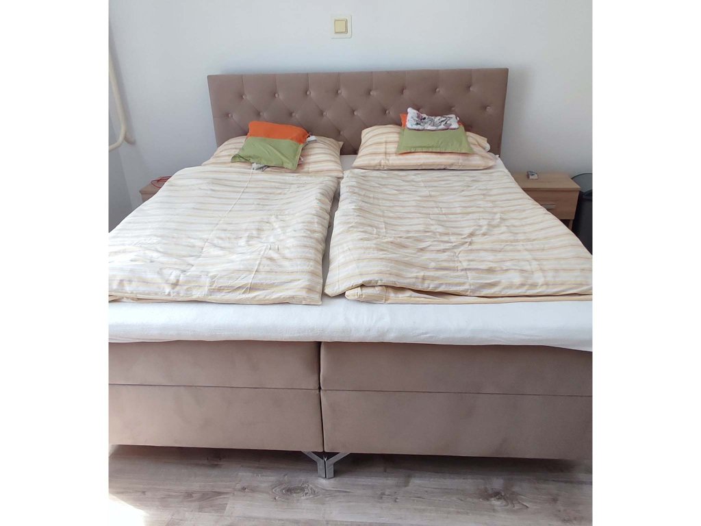 A boxspring ágy Magic velvet 2282 szövettel kárpitozott, amely puha, bársonyos és kellemes tapintású. Ez az anyag ellenálló a kikopással szemben és nem bolyhozódik. A bézs kontinentális ágy eleganciát visz minden hálószobába.