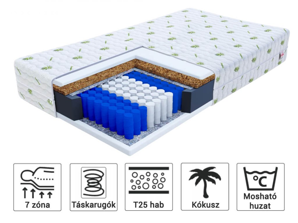 ✓ egészséges szellőzés, és a nedvesség elvezetése a szellős kókuszdeszka és a táskarugók mozgásának segítségével