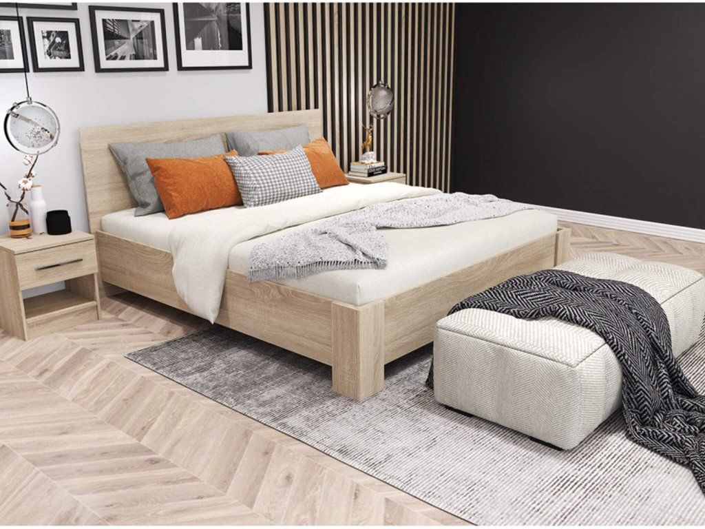 Gyönyörű sonoma tölgy színű IDEA franciaágy minőségi laminált deszkából (DTD), 16 mm vastagsággal, amely ellenáll a karcolásoknak, a nedvességnek és a nagy hőmérsékletnek. A bútor minőségi ABS élekkel rendelkezik, szép semleges sonoma tölgy színben, amely minden otthonba tökéletesen illik.