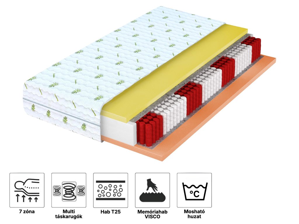 Anyag összetétele: Visco memóriahab, Filc, Multipocket NanoHARD, Poliuretán hab, Huzat