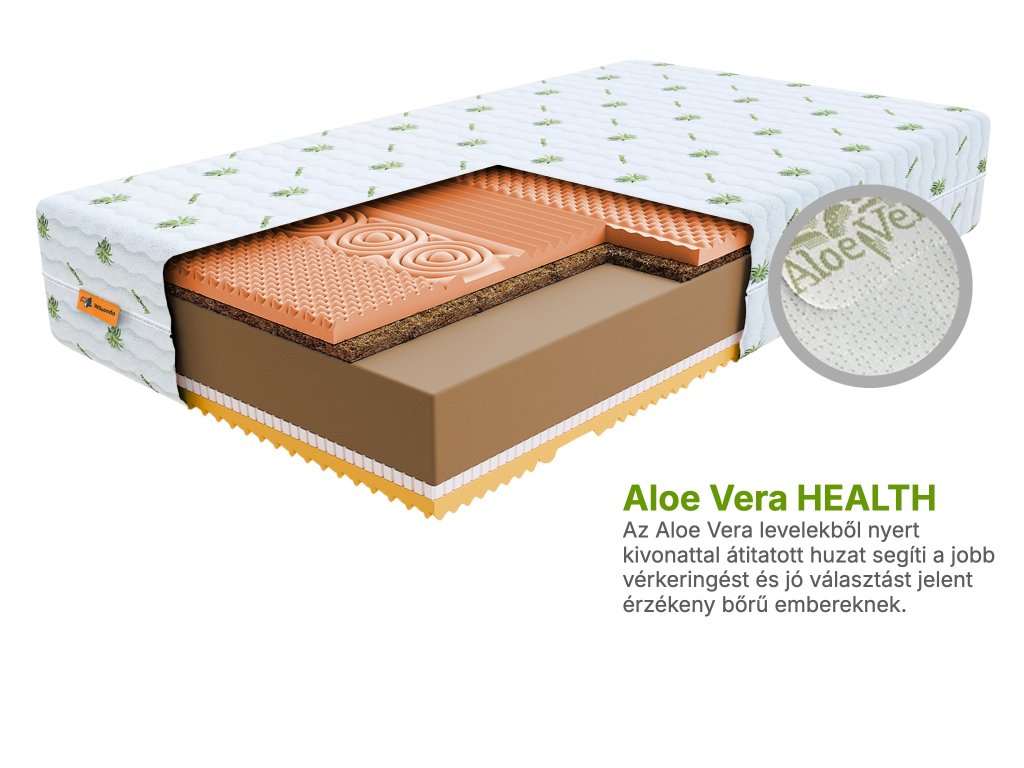 Mindkét oldal 7 zónás anatómiai profilozással van kiegészítve a test finom masszírozásához, a jobb vérkeringéshez és az izmok ellazításához alvás közben. A matrac belsejét rugalmas PUR hab T25 alkotja, amely biztosítja a jó légáramlást és megkönnyíti a matrac rendszeres forgatását még nagyobb méret esetén is. A rétegek környezetbarát módon, HOT MELT technológiával káros anyagok nélkül vannak ragasztva, és az antiallergén Aloe Vera huzat cipzárral van ellátva, így kényelmesen mosható mosógépben.