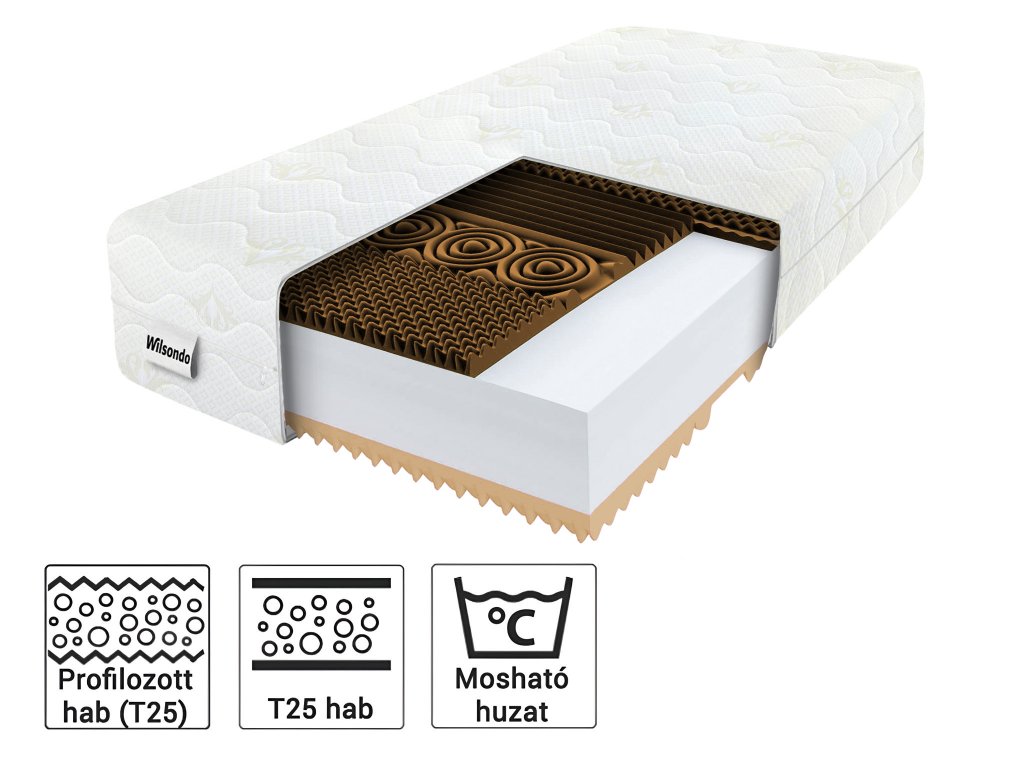 A kiváló minőségű, 7 zónás habból készült, profilozott felületű anyag elősegíti a jobb vérkeringést és az izmok ellazulását pihenés közben. A testhőmérséklet alapján alkalmazkodik a test formájához, ezáltal növelve a kényelmet és az alvás minőségét. Az egyes zónák eltérő keménysége optimális támogatást nyújt a gerincnek, és biztosítja a test természetes pozícióját. Ez a habtípus ideális választás allergiára érzékeny emberek számára is.
