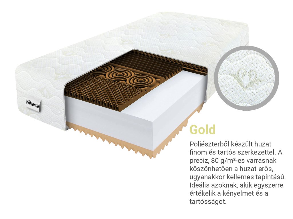 A luxus és hipoallergén Gold huzat levehető és 30 °C-on mosható, ami higiénikus alvást és egyszerű karbantartást biztosít. A precíz steppelés kellemes tapintást nyújt.