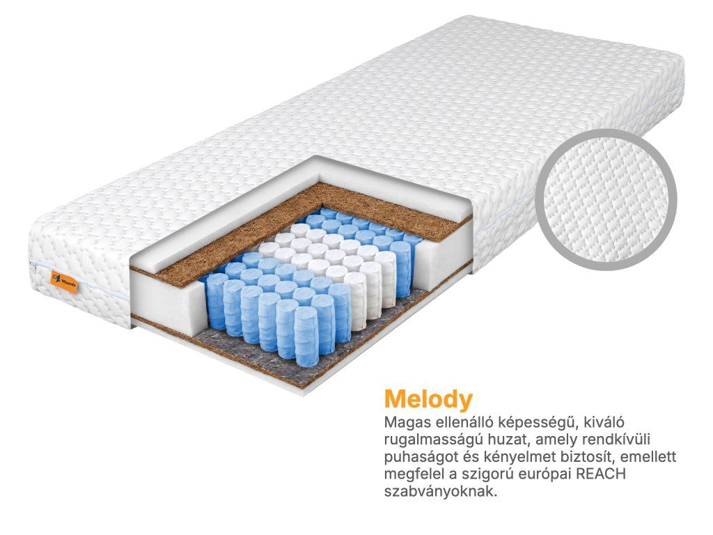- Matracvédő: Egy láthatatlan réteg, amely megvédi a Melody huzatot a szennyeződésektől és meghosszabbítja annak frissességét.