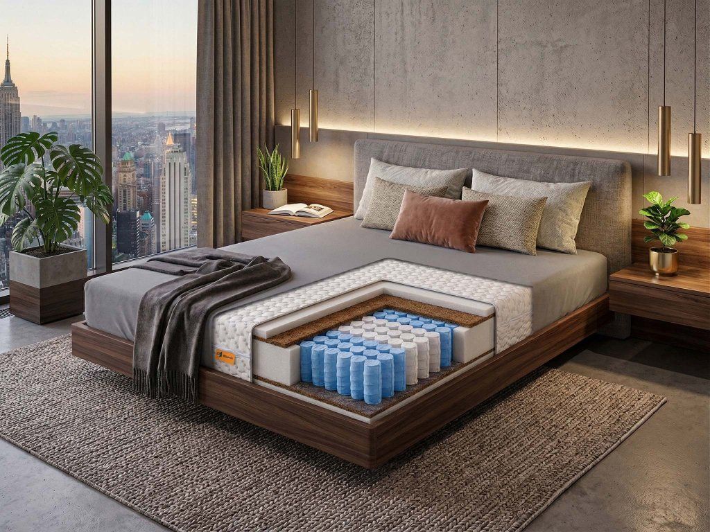 - Léces ágyrács: Stabil alap, amely elengedhetetlen a rugók megfelelő működéséhez és a kókuszrost lemez szellőzéséhez.