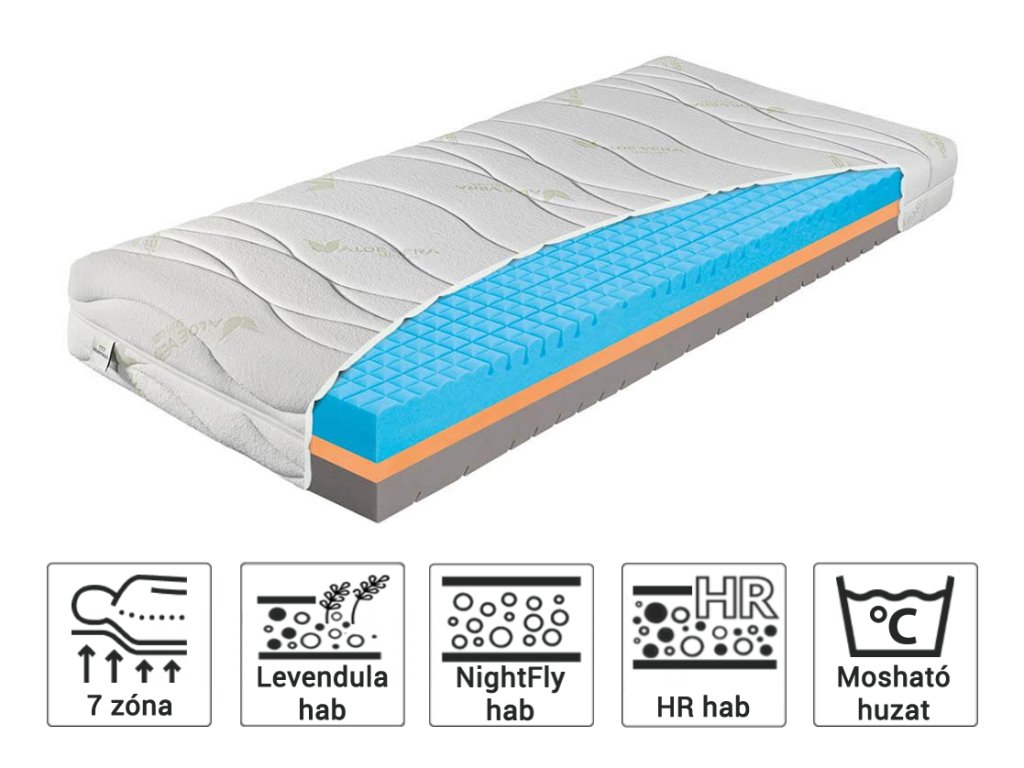 Anyagösszetétel: levandula hab, hideg HR hab, NightFly hab, Huzat