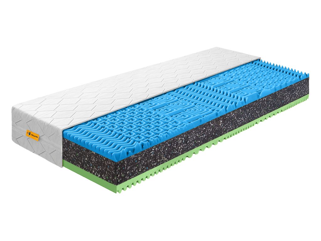 A kiváló minőségű, 7 zónás habból készült, profilozott felületű anyag elősegíti a jobb vérkeringést és az izmok ellazulását pihenés közben. A testhőmérséklet alapján alkalmazkodik a test formájához, ezáltal növelve a kényelmet és az alvás minőségét. Az egyes zónák eltérő keménysége optimális támogatást nyújt a gerincnek, és biztosítja a test természetes pozícióját. Ez a habtípus ideális választás allergiára érzékeny emberek számára is.
