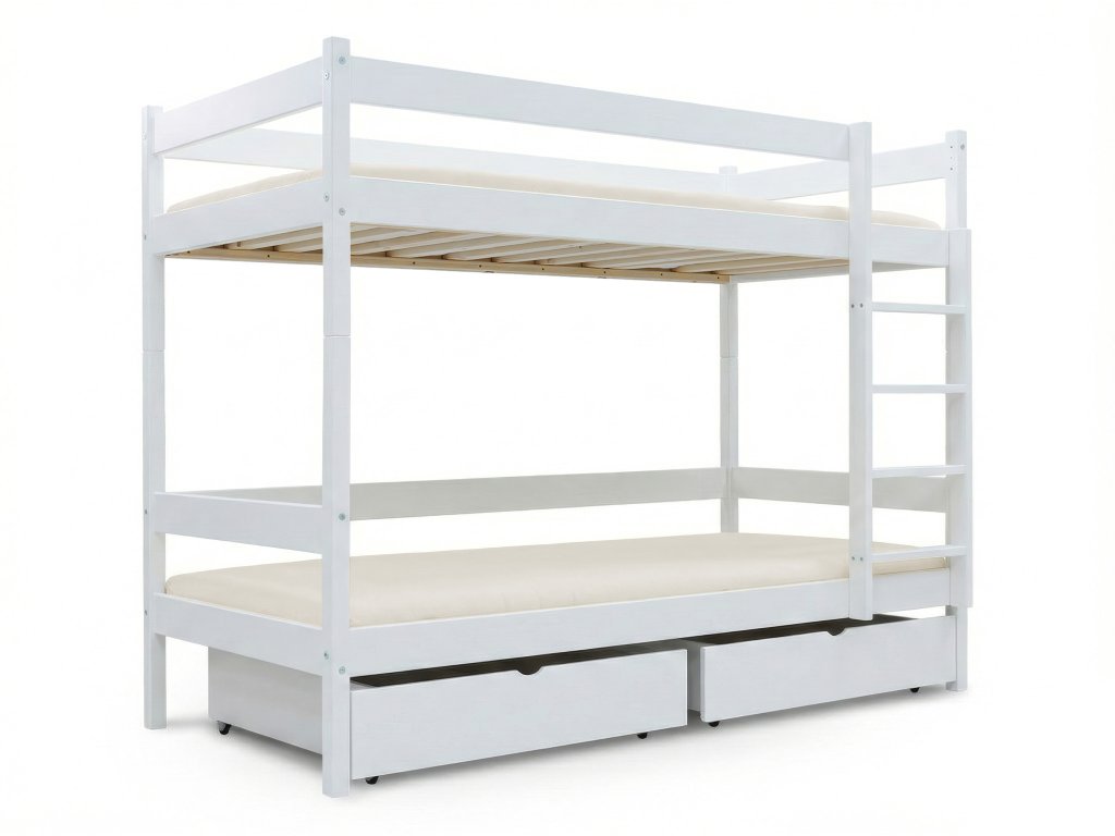 A tömör fa PAULA 2 emeletes ágy 90 x 200 cm fehér színben kapható, háromszor lakkozva fehér, természetre és egészségre nem ártalmas, ökológiai lakkal. Az ágy tömör boroviból készül, ennek köszönhetően a szerkezete nagyon stabil, felnőtteknek is megfelelő. Az emeletes ágy gyorsan és egyszerűen szétszedhető, így két különálló fekhelyként is használható. A létra kétoldalas, ezért az ágy univerzális, jobbosan vagy balosan is össze lehet szerelni. Az ágy mindazok számára megfelelő választás, akik minőségi árut szeretnének vásárolni, mivel tömör fából készül, így hosszú éveken át az Ön szolgálatában áll majd. Az emeletes ágy ágyneműtartóval és tömör fa ágyrácsokkal együtt kapható.