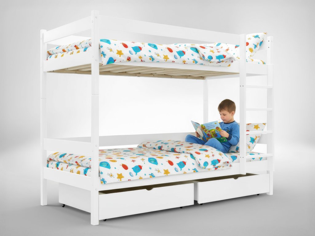 PAULA 2 - emeletes ágy 90x200 ágyneműtartóval - fehér