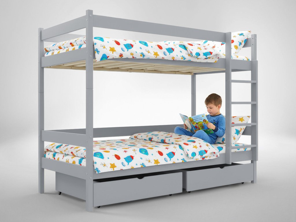 A tömör fa PAULA 2 emeletes ágy 90 x 200 cm szürke színben kapható, háromszor lakkozva természetre és egészségre nem ártalmas, ökológiai lakkal. Az ágy tömör boroviból készül, ennek köszönhetően a szerkezete nagyon stabil, felnőtteknek is megfelelő. Az emeletes ágy gyorsan és egyszerűen szétszedhető, így két különálló fekhelyként is használható. A létra kétoldalas, ezért az ágy univerzális, jobbosan vagy balosan is össze lehet szerelni. Az ágy mindazok számára megfelelő választás, akik minőségi árut szeretnének vásárolni, mivel tömör fából készül, így hosszú éveken át az Ön szolgálatában áll majd. Az emeletes ágy ágyneműtartóval és tömör fa ágyrácsokkal együtt kapható.