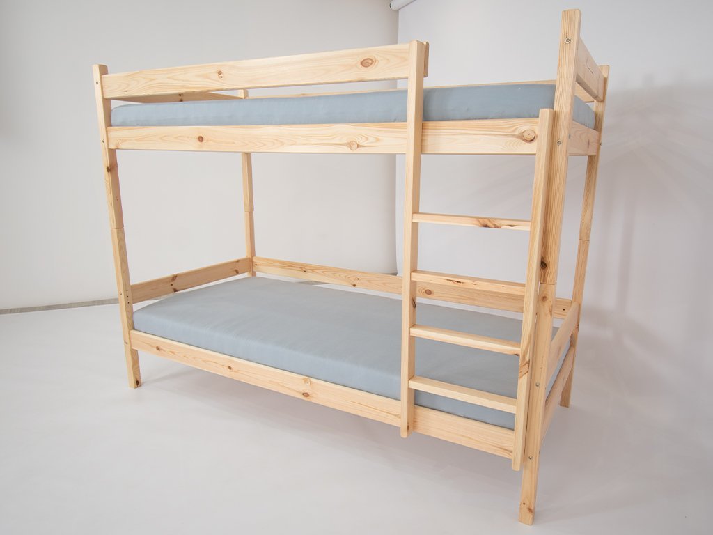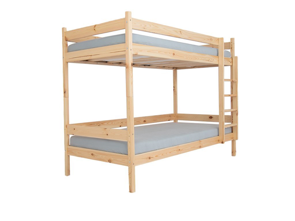 A tömör fa PAULA 2 emeletes ágy 90 x 200 cm natúr színben kapható, háromszor lakkozva színtelen, természetre és egészségre nem ártalmas, ökológiai lakkal. Az ágy tömör boroviból készül, ennek köszönhetően a szerkezete nagyon stabil, felnőtteknek is megfelelő. Az emeletes ágy gyorsan és egyszerűen szétszedhető, így két különálló fekhelyként is használható. A létra kétoldalas, ezért az ágy univerzális, jobbosan vagy balosan is össze lehet szerelni. Az ágy mindazok számára megfelelő választás, akik minőségi árut szeretnének vásárolni, mivel tömör fából készül, így hosszú éveken át az Ön szolgálatában áll majd. Az emeletes ágy ágyneműtartóval és tömör fa ágyrácsokkal együtt kapható.Az ágy szétszedhető két különálló fekhelyre.