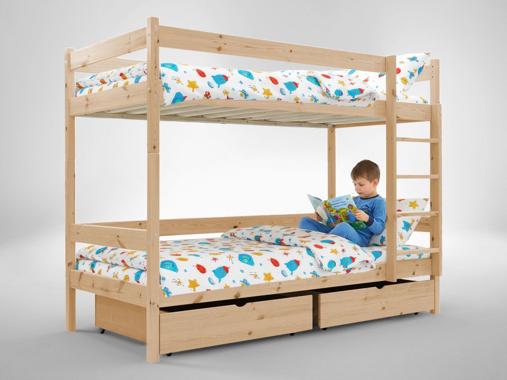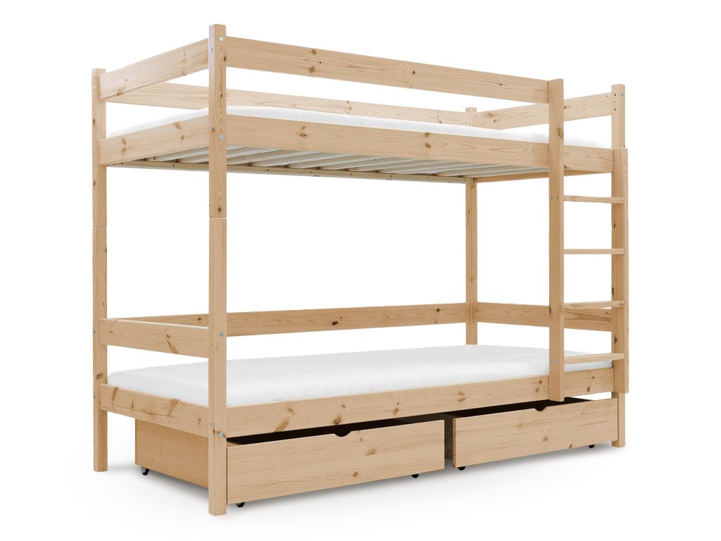 PAULA 2 emeletes ágy 90x200 ágyneműtartóval natúr borovi