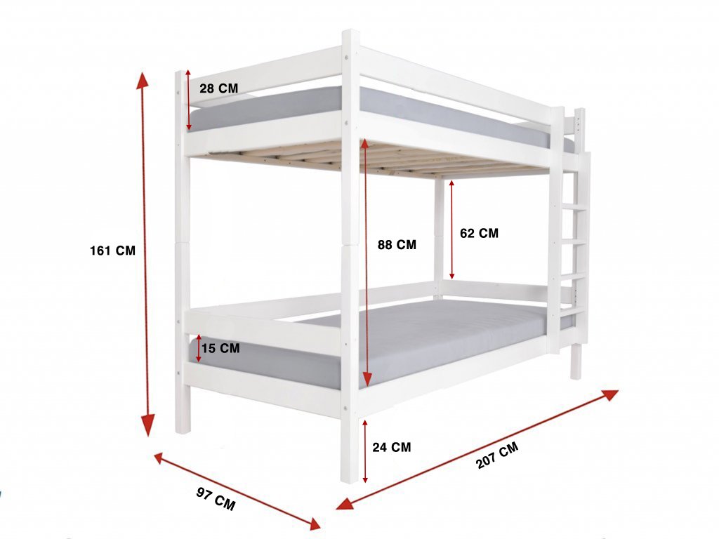 - A padló és az alsó fekhely ágyrácsa közötti távolság: 24 cm
