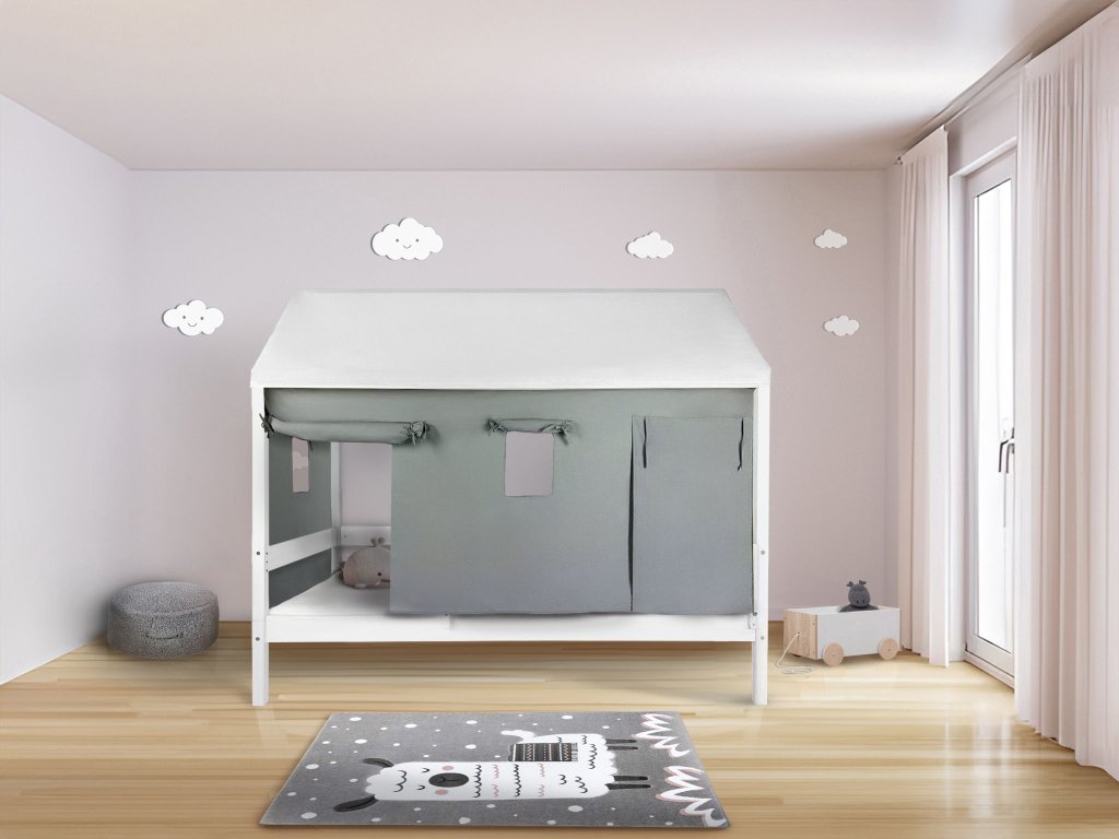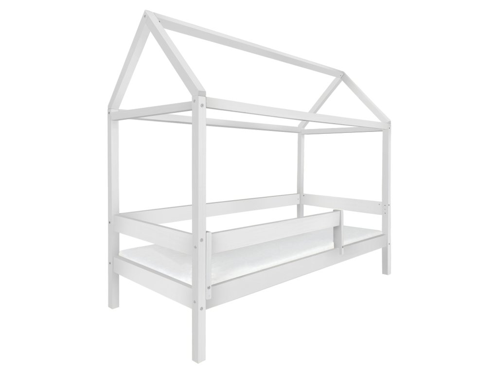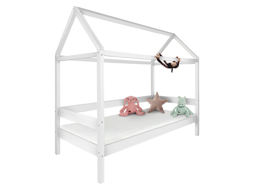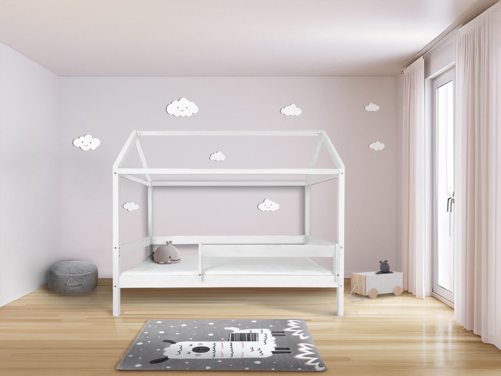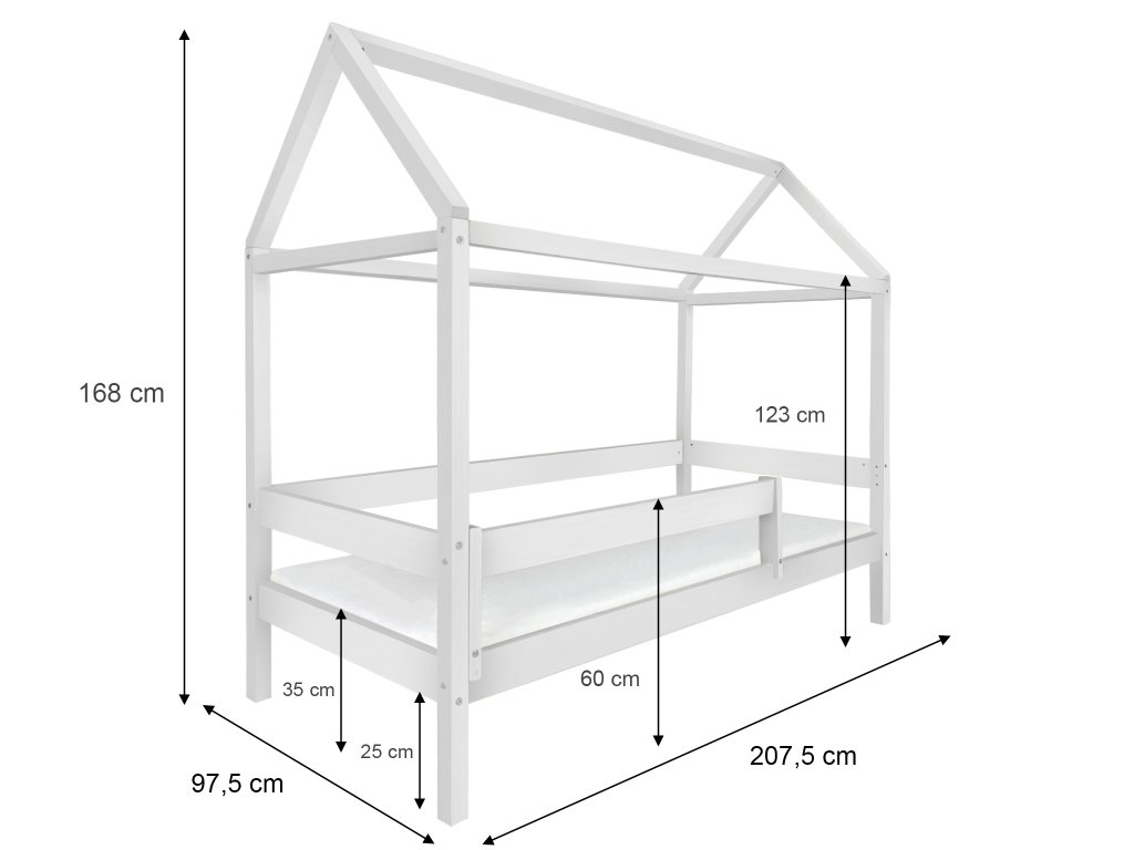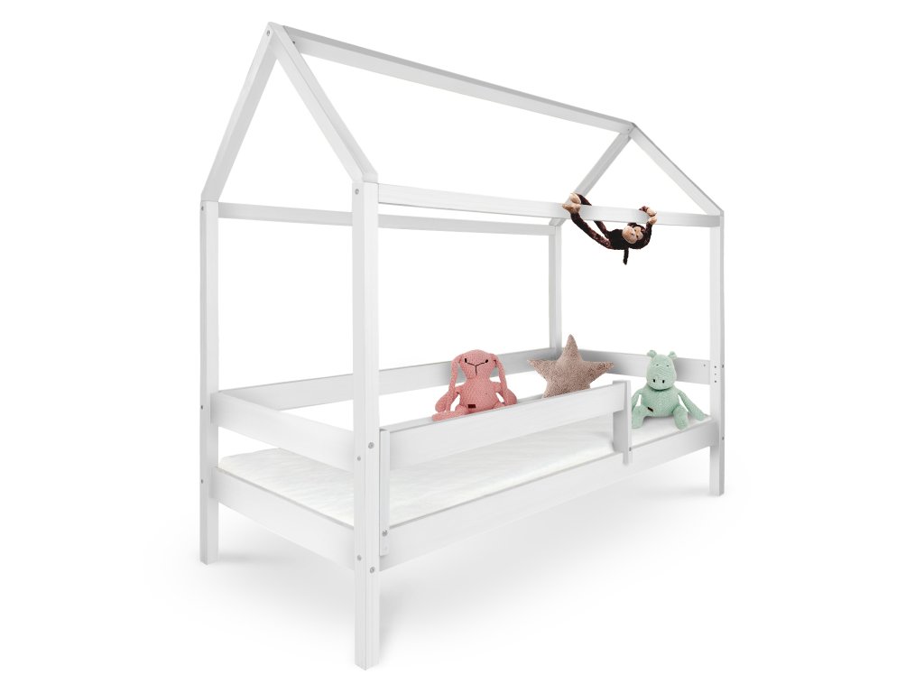 A fehér PERY házikó gyerekágy 200 x 90 cm tömör fából készült. A fehér színének köszönhetően kellemes atmoszférát teremt majd a gyerekszobában, így is hozzájárulva gyermeke pihentető alvásához. A gyerekágyhoz minőségi léces ágyrács is tartozik, amely biztosítja a megfelelő alátámasztást és a kényelmet alvás során. A levehető leesésgátlónak köszönhetően az igényeihez igazíthatja és biztonságossá teheti gyermekének. A leesésgátló könnyen felszerelhető és leszerelhető az ágy jobb vagy bal oldalára is. Ezen kívül a házikó ágyat kreatívan fel is lehet díszíteni fényfüzérekkel vagy egyéb dísztárgyakkal. Pár pléd segítségével pedig egy igazi kis bunkert is létrehozhatnak. Mindennek csak a gyerekek kreativitása szabhat határt. A Pery házikó formájú ágy tehát nem csak egy praktikus ágy, de biztosítja majd gyermeke kényelmét, pihenését és szórakozását is.