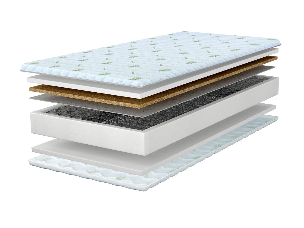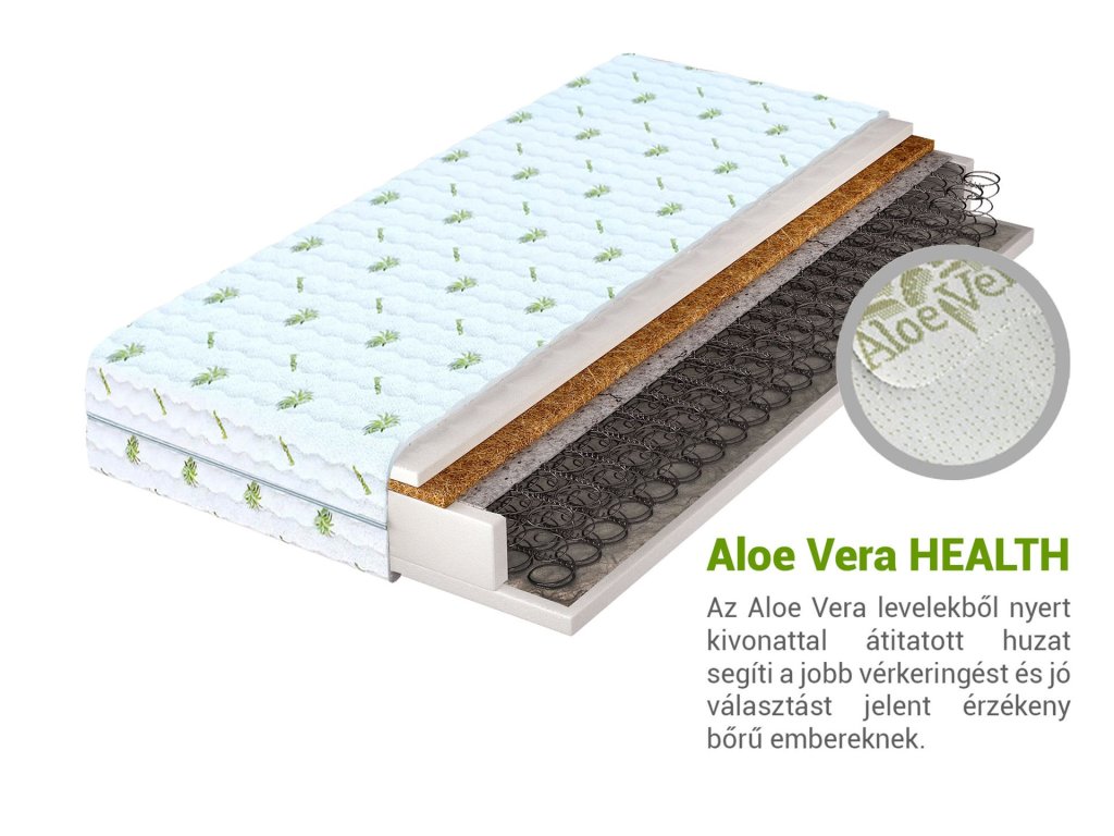 Anyaga: T25-ös poliuretán hab, filc (nemez), Bonell rugók (11 cm), kókusz réteg, steppelt Aloe Vera huzat