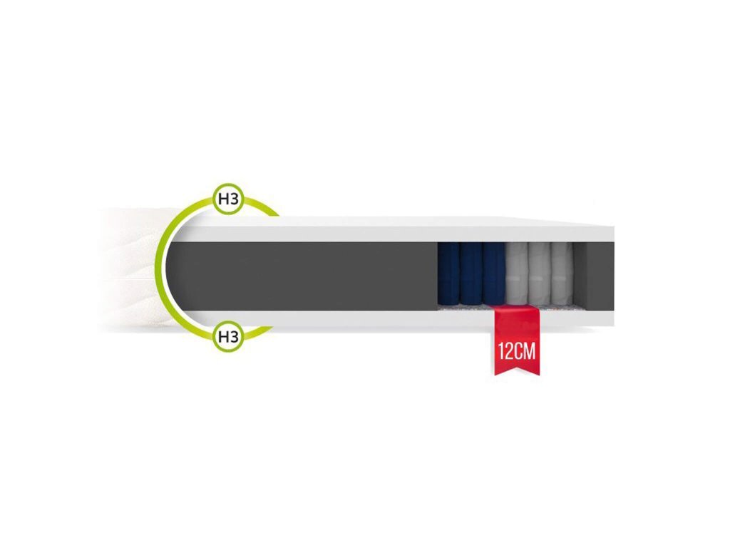 A kiváló minőségű, 7 zónás habból készült, profilozott felületű anyag elősegíti a jobb vérkeringést és az izmok ellazulását pihenés közben. A testhőmérséklet alapján alkalmazkodik a test formájához, ezáltal növelve a kényelmet és az alvás minőségét. Az egyes zónák eltérő keménysége optimális támogatást nyújt a gerincnek, és biztosítja a test természetes pozícióját. Ez a habtípus ideális választás allergiára érzékeny emberek számára is.