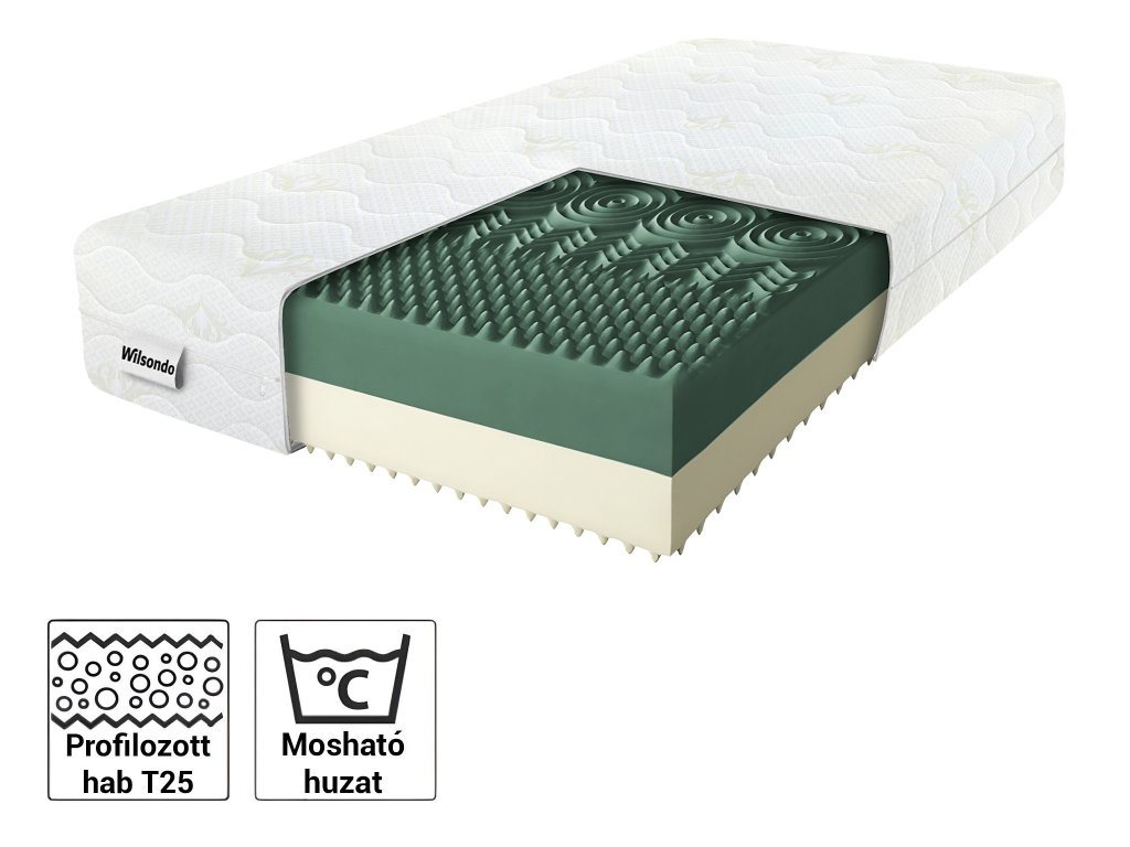A kiváló minőségű, 7 zónás habból készült, profilozott felületű anyag elősegíti a jobb vérkeringést és az izmok ellazulását pihenés közben. A testhőmérséklet alapján alkalmazkodik a test formájához, ezáltal növelve a kényelmet és az alvás minőségét. Az egyes zónák eltérő keménysége optimális támogatást nyújt a gerincnek, és biztosítja a test természetes pozícióját. Ez a habtípus ideális választás allergiára érzékeny emberek számára is.