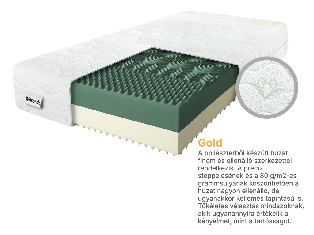 A matrac huzata az eredeti GOLD anyag hiánya miatt eltérhet, azonban ez nem befolyásolja a matrac minőségét.