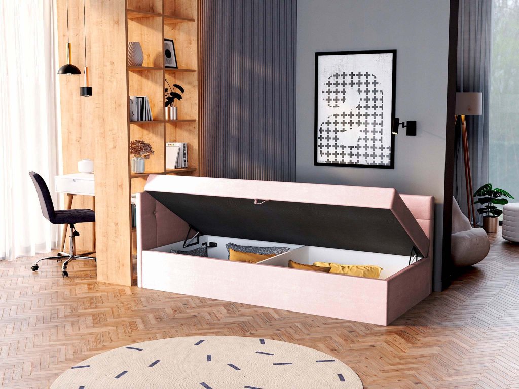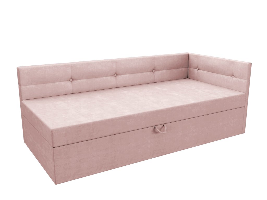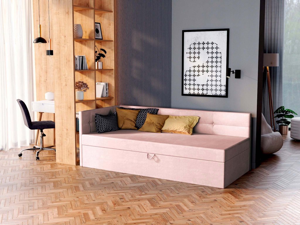 Rózsaszín AURIGA saroktámlás heverő ágyneműtartóval 90x200