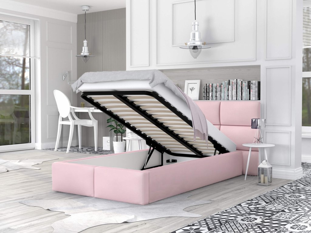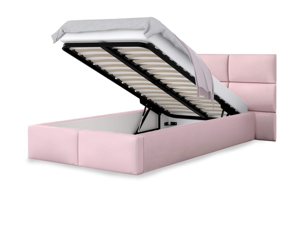 Az igazán elbűvölő rózsaszín DONY kárpitozott felnyitható ágyneműtartós ágy 120x200 cm tökéletes választás minden lányos gyerekszobába vagy kamasz szobába. Az ágy igazán modern és praktikus is egyben. Olvasás vagy tévénézés közben nagy hasznát veszi majd a magas és puha kárpitozott háttámlának. Az ágyhoz praktikus ágyneműtartó is tartozik, amely két gázrugó segítségével könnyen felnyitható. A minőségi anyagok és a stabil szerkezet garantálják, hogy hosszú ideig az Ön vagy gyermekei szolgálatában áll majd. A Trinity szövet, amellyel az ágy kárpitozva van nagyon kellemes tapintású. A speciális nagy átmérőjű csavaroknak köszönhetően az ágy egyes részei igazán stabilan rögzülnek egymáshoz. Az ágyhoz lamellás ágyrács tartozik.