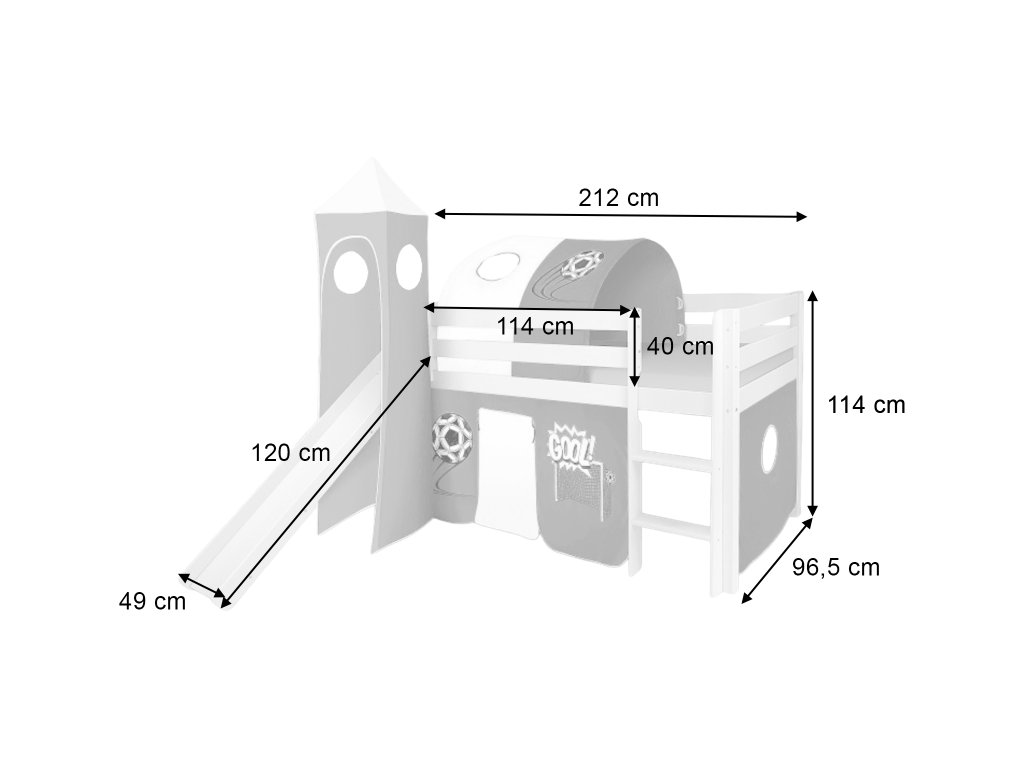 - Az ágy szélessége a csúszdával együtt: 220 cm