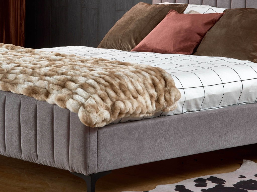Gyönyörű steppelt háttámlával díszített Francesca franciaágy 160x200, amely tökéletes minden modern hálószobába. Lenyűgözi a luxusos és ugyanakkor finom megjelenésével. Ez az egyedi bútor darab még a legigényesebb vásárlók elvárásainak is megfelel. Az ágykeret és a fejtámla dekoratív függőleges steppeléssel díszített, ami egyedi megjelenést kölcsönöz az ágynak. Az ágy szürke szövettel kárpitozott, amely puha és kellemes tapintású. Az ágy összképét a fekete színű, porszórt festett acél lábak egészítik ki. A fényűző, időtlen designt gyönyörűen illeszkedik egy modern vagy skandináv enteriőrbe is. A magas fejtámla nagyszerű társ lesz egy könyv olvasásakor vagy pihenéskor. Az ágyat lamellás ágyráccsal kapható. A szürke ágy a megfelelő matraccal együtt tökéletes helyet biztosít, és garantálja a pihentető alvást.