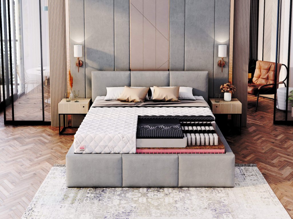 Az innovatív rugóréteg optimális testtartást biztosít, miközben növeli az alvás kényelmét. A kisebb átmérőjű, de nagy teherbírású rugók külön textil tasakokba vannak csomagolva, ami garantálja azok független mozgását és alkalmazkodóképességét. Ez a rendszer nemcsak a matrac rugalmasságát növeli, hanem megakadályozza a mozgás átvitelét is, így az alvópartnerek nem zavarják egymást pihenés közben. Kiváló választás páros matracokhoz, különösen eltérő testsúlyú párok számára, mivel egyéni kényelmet és alátámasztást nyújt mindkét félnek.