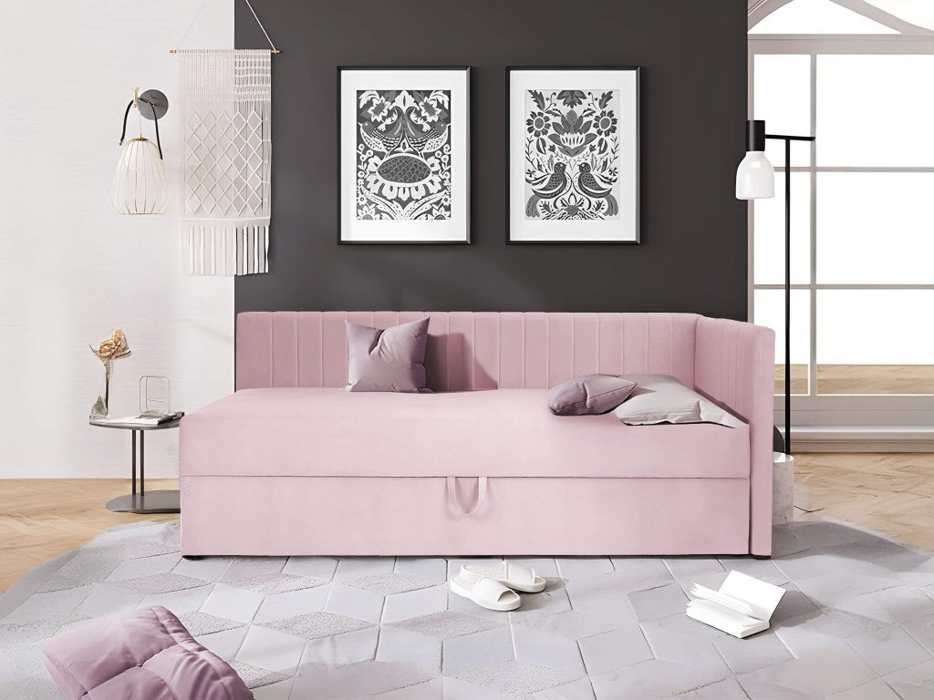TEODOR ágyneműtartós rózsaszín heverő 90x200