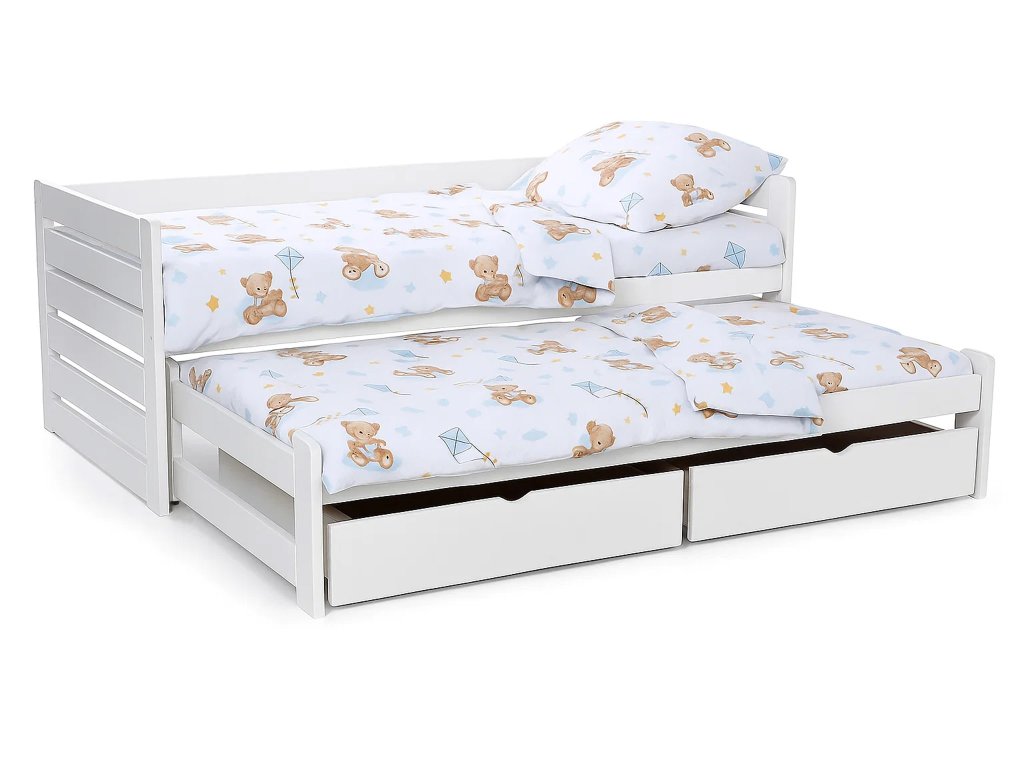 A tömör fából készült elegáns fehér színű VERONIKA 11 gyerekágy 90 x 200 cm tökéletes választás kisebb gyerekszobákba is. Az ágy kihúzható vendégággyal, ágyráccsal és ágyneműtartó fiókkal rendelkezik. Tömör borovi fenyőből készült, melynek köszönhetően nagyon stabil a szerkezete. A faágy fehér színben kapható, 3x lakkozva természetre nem ártalmas ökológiai lakkal. Az ágy két tároló fiókkal is rendelkezik, amelyek műanyag kerekeken mozognak, hogy ne sértsék meg a padlót. Nincsenek az ágyhoz rögzítve, így könnyen mozgathatók.