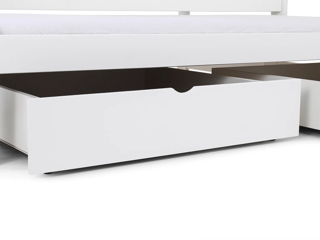 A tároló fiókok nem töltik ki az ágy alatti egész helyet! Az ágy lábai és a tároló fiókok között több hézag van, nincsenek olyan közel, mint az illusztrációs képen!