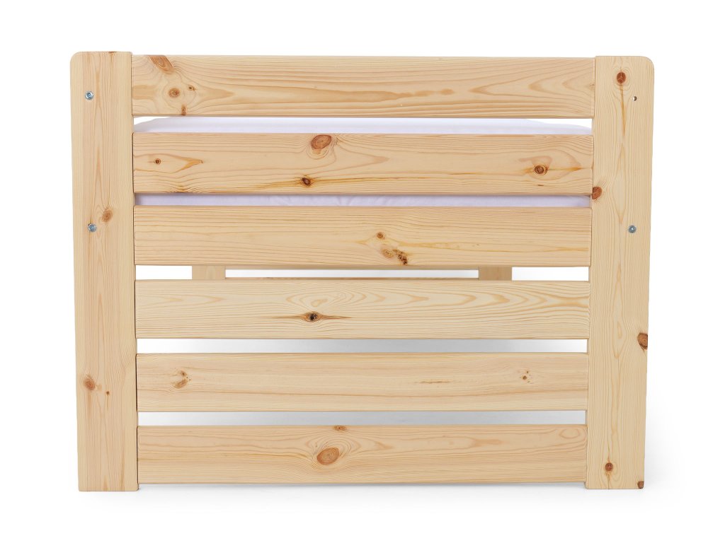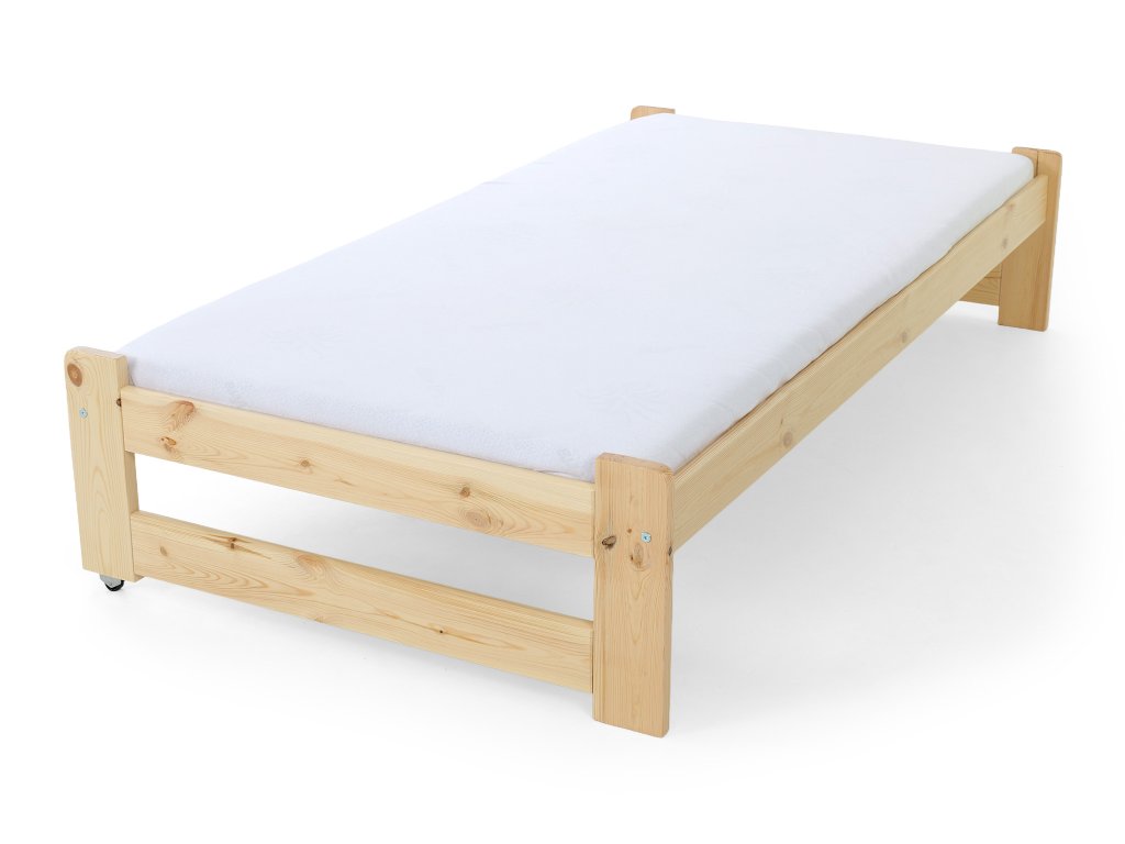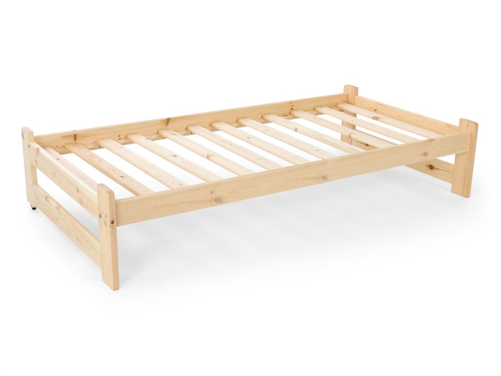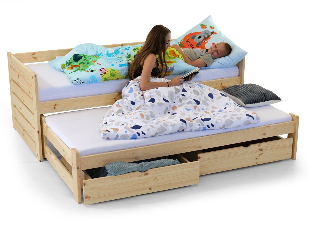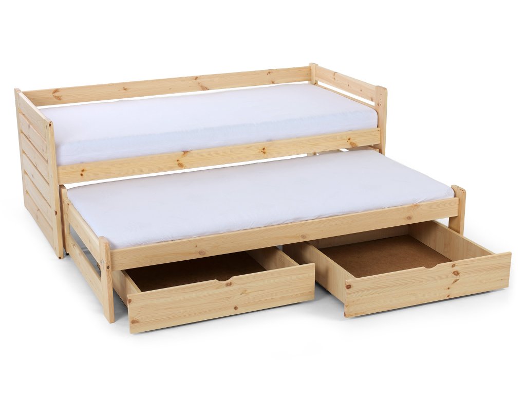 A tömör fából készült VERONIKA 11 gyerekágy 90 x 200 cm tökéletes választás kisebb gyerekszobákba is. Az ágy kihúzható vendégággyal, ágyráccsal és ágyneműtartó fiókkal rendelkezik. Tömör borovi fenyőből készült, melynek köszönhetően nagyon stabil a szerkezete. A faágy natúr borovi színben kapható, 3x lakkozva természetre nem ártalmas ökológiai lakkal. Az ágy két tároló fiókkal is rendelkezik, amelyek műanyag kerekeken mozognak, hogy ne sértsék meg a padlót. Nincsenek az ágyhoz rögzítve, így könnyen mozgathatók.