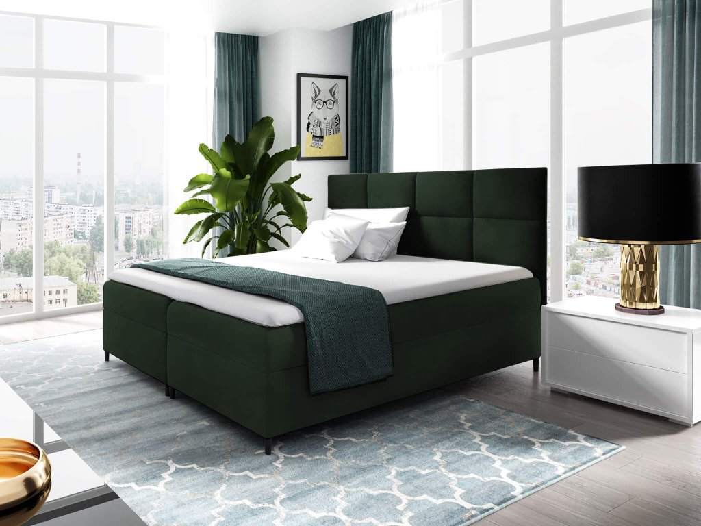 Zöld LEILA kárpitozott boxspring ágy matraccal és ágyráccsal